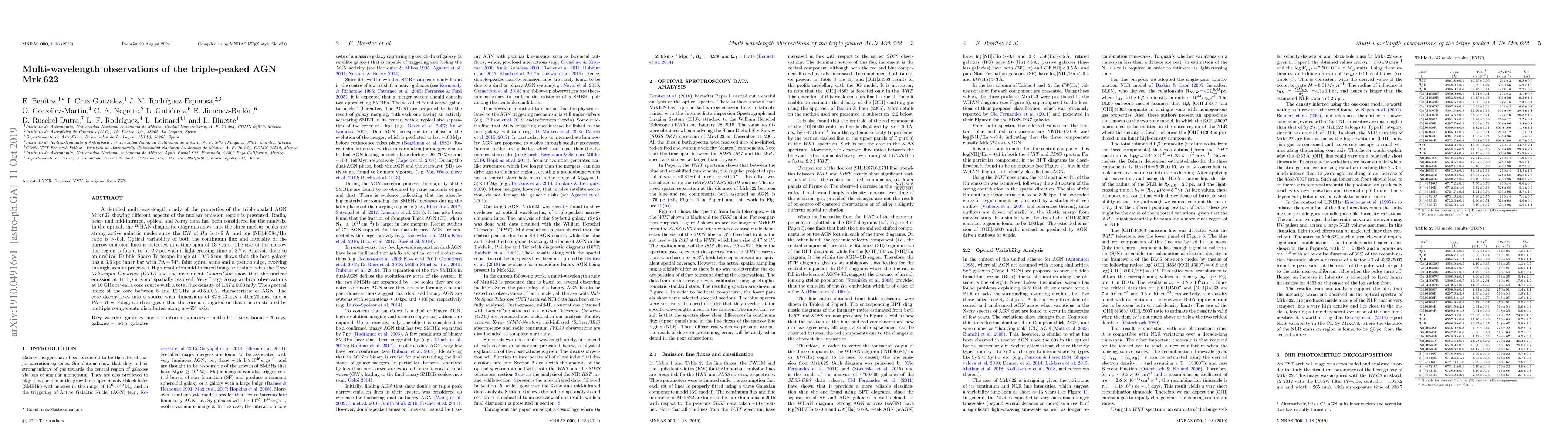 A team studied the triple-peaked active galactic nucleus Mrk 622 using multiple wavelengths, finding strong evidence of active galactic nuclei and variability in its optical emission lines over 13 years.
