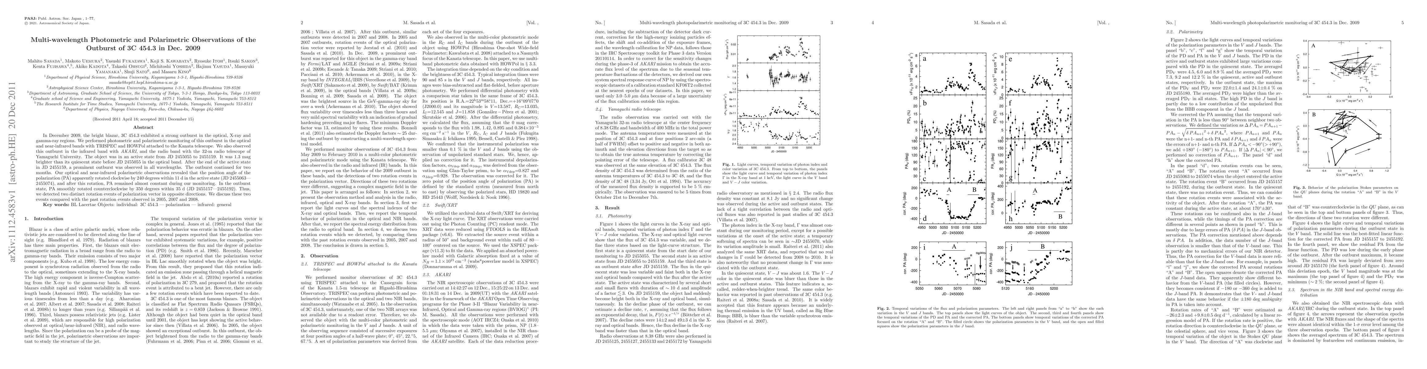 The research monitored the 2009 outburst of blazar 3C 454.3 across multiple wavelengths, revealing it was 1.3 mag brighter in the optical than its quiescent state. Polarimetric observations detected two distinct rotation events of the polarization vector in opposite directions during the outburst.