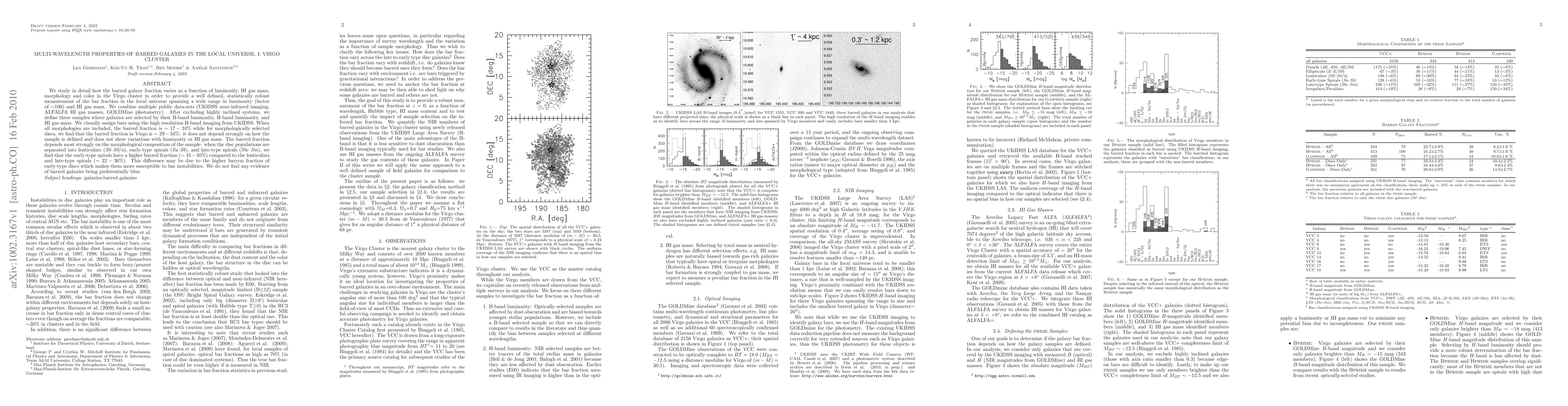 A study of barred galaxies in the Virgo cluster found that 17-24% of galaxies were barred across different luminosity ranges, while a subset of morphologically selected discs had a higher bar fraction of 29-34%.