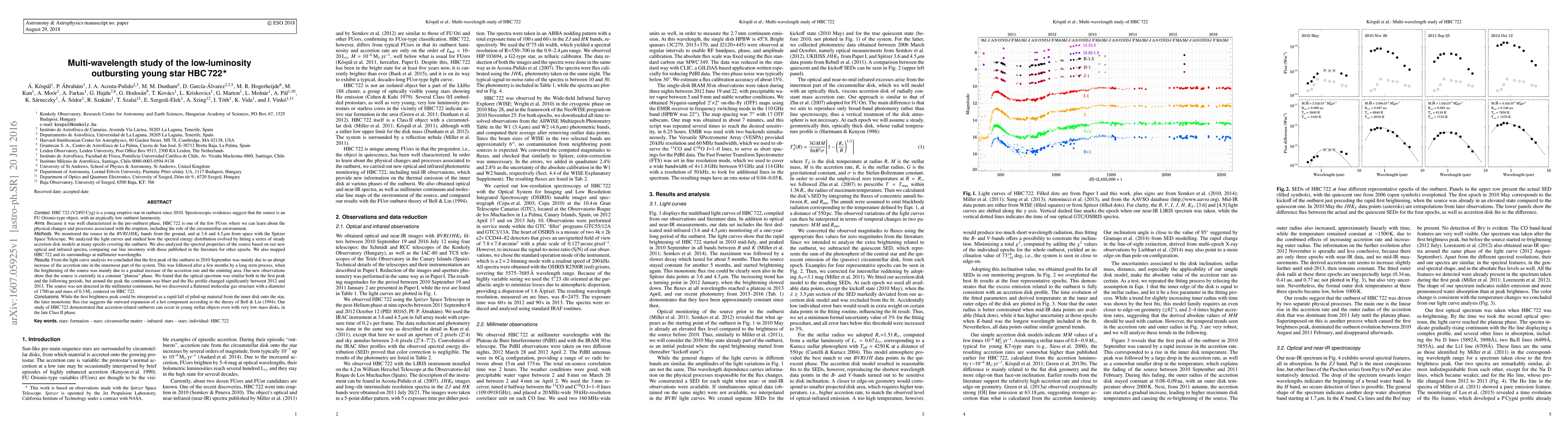 This study monitored the low-luminosity outbursting young star HBC 722 across multiple wavelengths, revealing that the initial brightness peak in 2010 resulted from a rapid increase in accretion rate, followed by a gradual accretion process. The star is now in a plateau phase, indicating accretion-related outbursts can occur even in young stellar objects with low-mass disks.