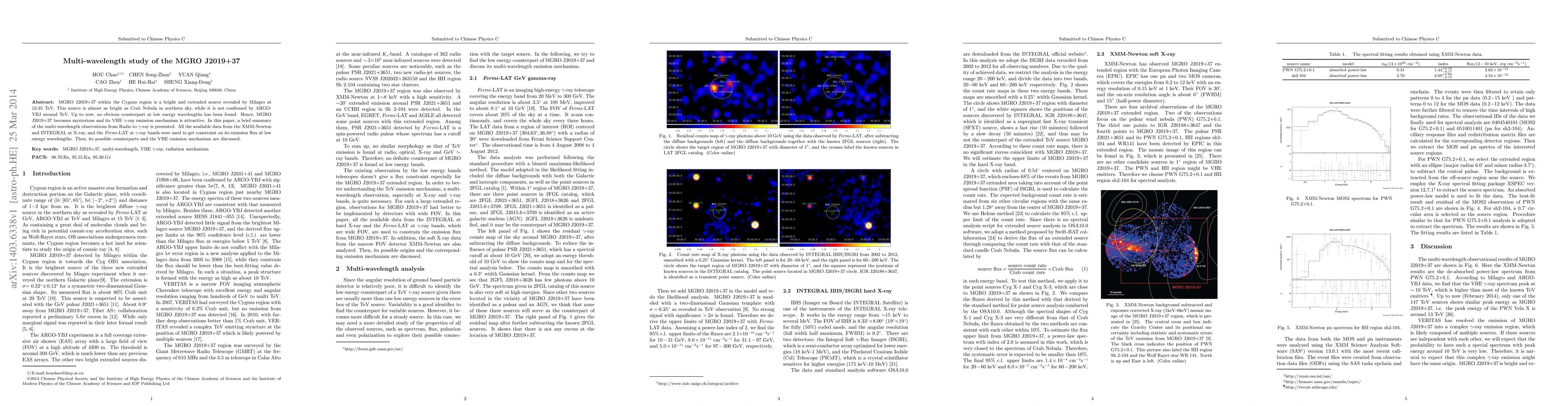 Researchers studied MGRO J2019+37, a mysterious gamma-ray source in the Cygnus region, using multi-wavelength observations from Radio to gamma-ray. They found no low-energy counterparts but proposed possible explanations for its high-energy emission mechanism.