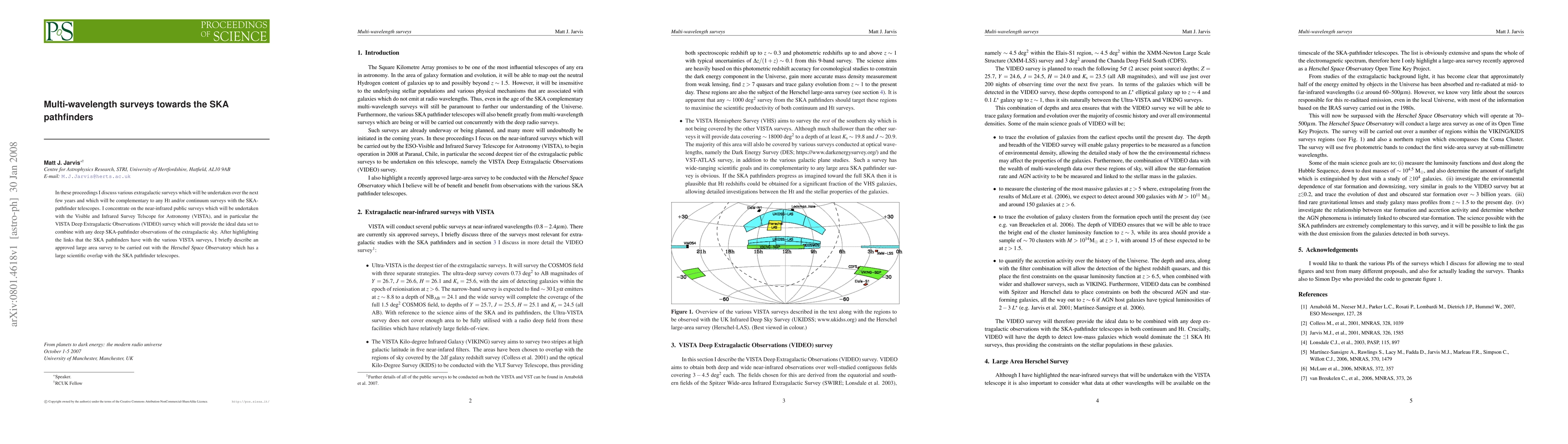 This paper discusses upcoming extragalactic surveys, focusing on near-infrared surveys with VISTA and the VIDEO survey, which will complement SKA-pathfinder observations. It also mentions a Herschel Space Observatory survey with significant scientific overlap with the SKA pathfinders.