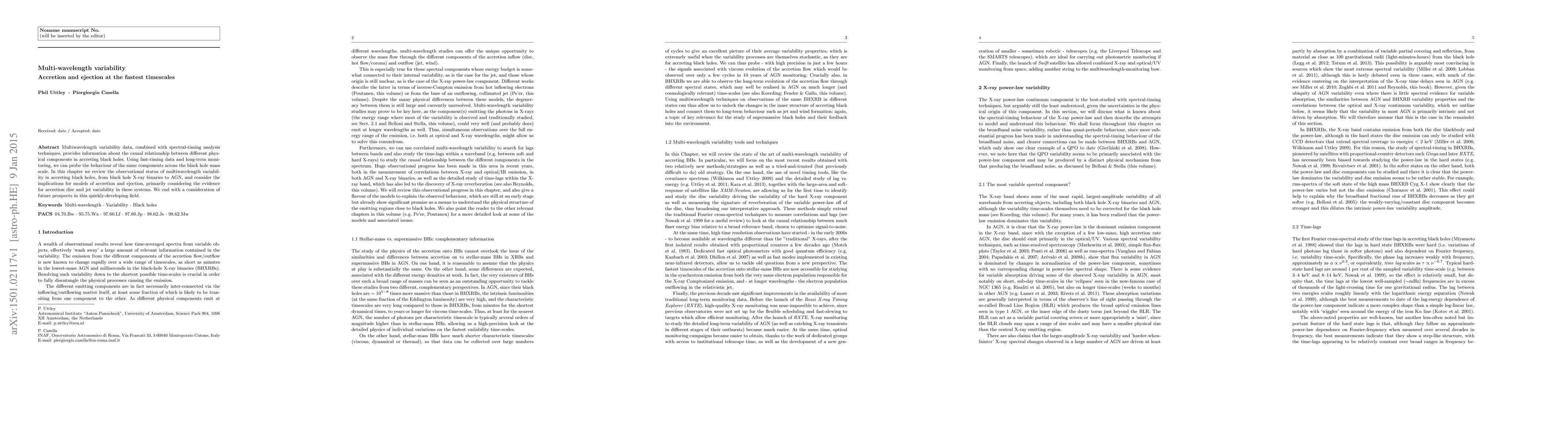 This paper reviews multiwavelength variability in accreting black holes, using fast-timing data and long-term monitoring to understand the relationship between accretion disc and jet variability. It considers evidence across black hole X-ray binaries and AGN, highlighting implications for accretion and ejection models, with a focus on future prospects in this rapidly evolving field.