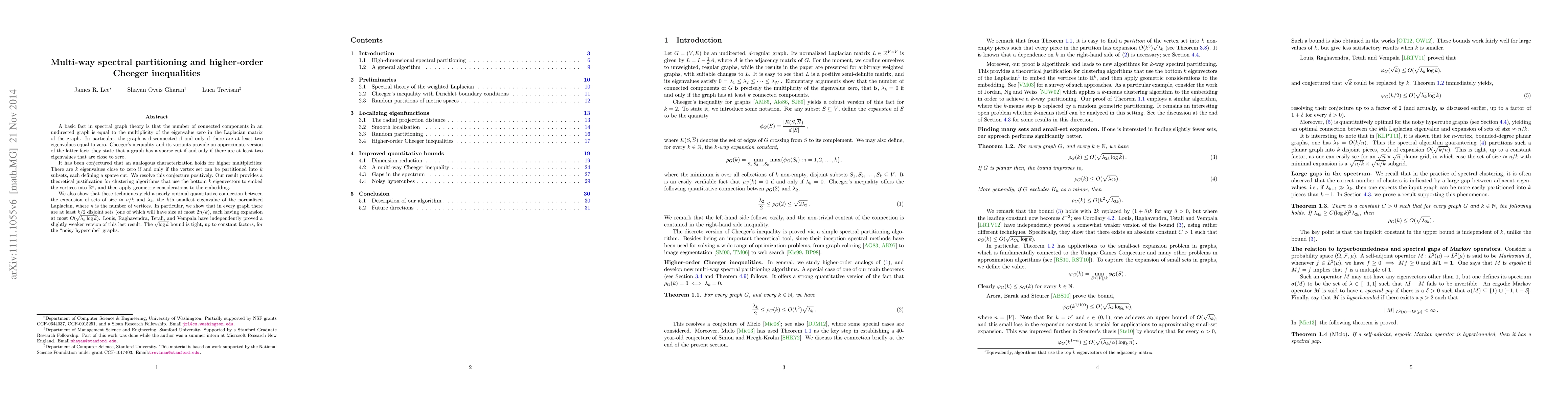 A basic fact in spectral graph theory is that the number of connected components in an undirected graph is equal to the multiplicity of the eigenvalue zero in the Laplacian matrix of the graph. In particular, the graph is disconnected if and only if there are at least two eigenvalues equal to zero. Cheeger's inequality and its variants provide an approximate version of the latter fact; they state that a graph has a sparse cut if and only if there are at least two eigenvalues that are close to zero. It has been conjectured that an analogous characterization holds for higher multiplicities, i.e., there are $k$ eigenvalues close to zero if and only if the vertex set can be partitioned into $k$ subsets, each defining a sparse cut. We resolve this conjecture. Our result provides a theoretical justification for clustering algorithms that use the bottom $k$ eigenvectors to embed the vertices into $\mathbb R^k$, and then apply geometric considerations to the embedding. We also show that these techniques yield a nearly optimal tradeoff between the expansion of sets of size $\approx n/k$, and the $k$th smallest eigenvalue of the normalized Laplacian matrix, denoted $\lambda_k$. In particular, we show that in every graph there is a set of size at most $2n/k$ which has expansion at most $O(\sqrt{\lambda_k \log k})$. This bound is tight, up to constant factors, for the "noisy hypercube" graphs.