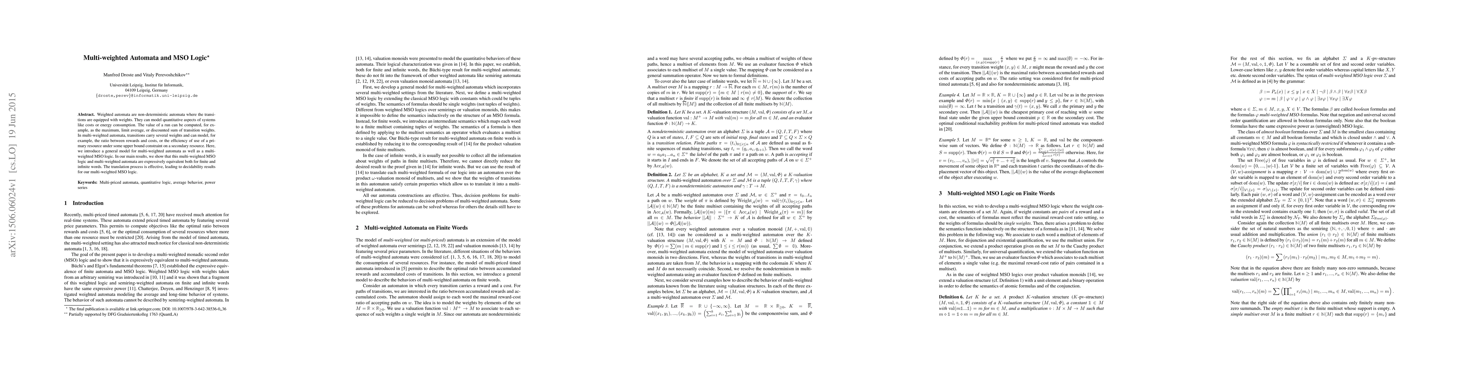 This paper introduces a model for multi-weighted automata and a corresponding multi-weighted MSO logic, demonstrating their expressive equivalence and decidability for both finite and infinite words. The translation between the two is effective.