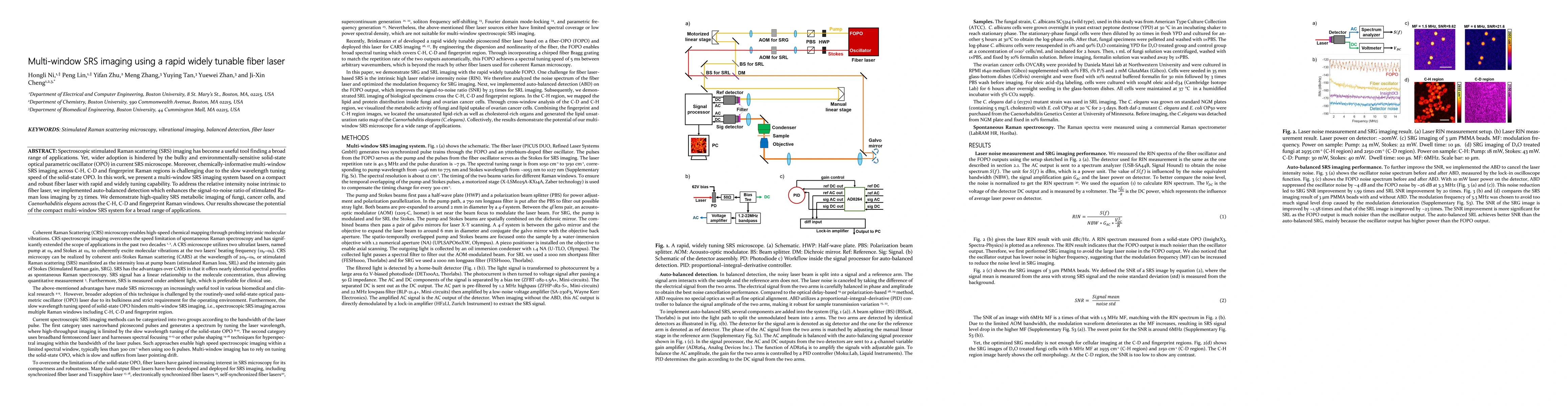 Spectroscopic stimulated Raman scattering (SRS) imaging has become a useful tool finding a broad range of applications. Yet, wider adoption is hindered by the bulky and environmentally-sensitive solid-state optical parametric oscillator (OPO) in current SRS microscope. Moreover, chemically-informative multi-window SRS imaging across C-H, C-D and fingerprint Raman regions is challenging due to the slow wavelength tuning speed of the solid-state OPO. In this work, we present a multi-window SRS imaging system based on a compact and robust fiber laser with rapid and widely tuning capability. To address the relative intensity noise intrinsic to fiber laser, we implemented auto-balanced detection which enhances the signal-to-noise ratio of stimulated Raman loss imaging by 23 times. We demonstrate high-quality SRS metabolic imaging of fungi, cancer cells, and Caenorhabditis elegans across the C-H, C-D and fingerprint Raman windows. Our re-sults showcase the potential of the compact multi-window SRS system for a broad range of applications.