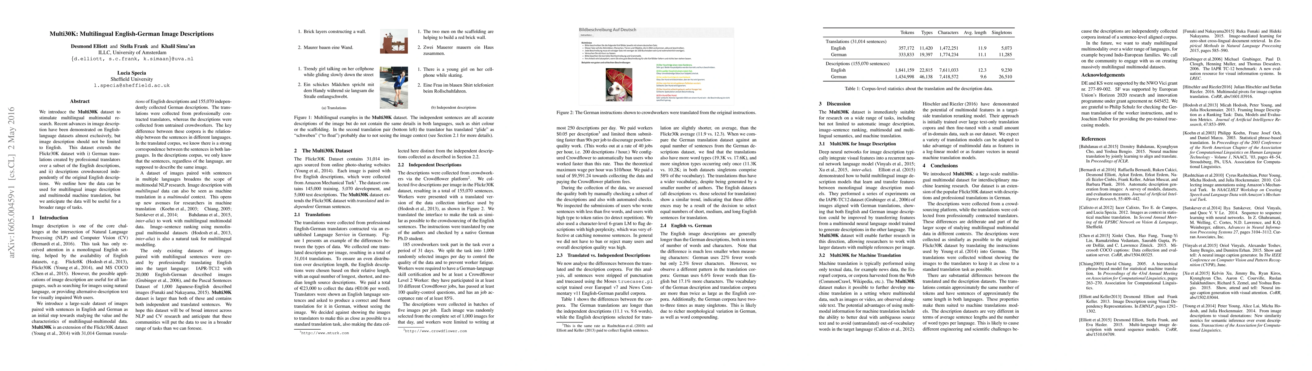 The use of crowdsourced German descriptions in conjunction with professional translations provides a unique approach to multilingual image description.