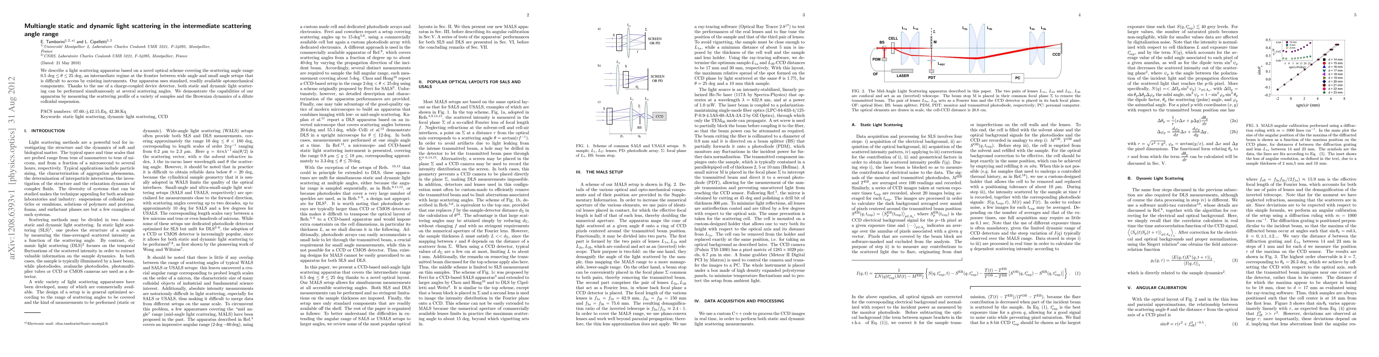 This paper introduces a novel light scattering apparatus that covers the intermediate scattering angle range, enabling simultaneous static and dynamic light scattering measurements. The apparatus uses standard components and demonstrates its capabilities by analyzing sample scattering profiles and colloidal suspension dynamics.