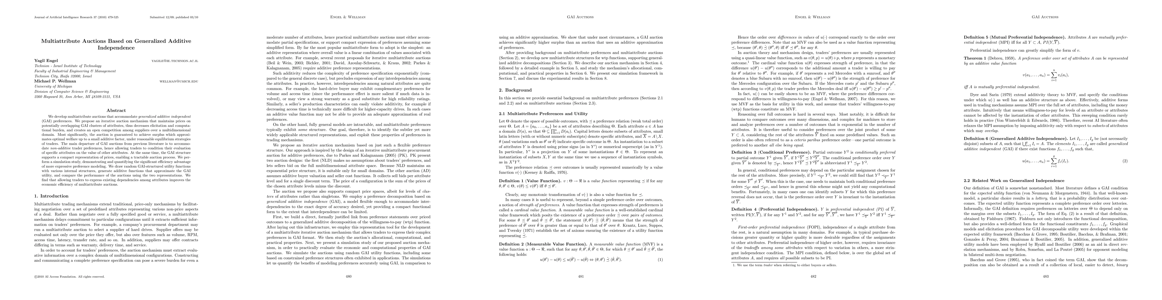 We develop multiattribute auctions that accommodate generalized additive independent (GAI) preferences. We propose an iterative auction mechanism that maintains prices on potentially overlapping GAI clusters of attributes, thus decreases elicitation and computational burden, and creates an open competition among suppliers over a multidimensional domain. Most significantly, the auction is guaranteed to achieve surplus which approximates optimal welfare up to a small additive factor, under reasonable equilibrium strategies of traders. The main departure of GAI auctions from previous literature is to accommodate non-additive trader preferences, hence allowing traders to condition their evaluation of specific attributes on the value of other attributes. At the same time, the GAI structure supports a compact representation of prices, enabling a tractable auction process. We perform a simulation study, demonstrating and quantifying the significant efficiency advantage of more expressive preference modeling. We draw random GAI-structured utility functions with various internal structures, generate additive functions that approximate the GAI utility, and compare the performance of the auctions using the two representations. We find that allowing traders to express existing dependencies among attributes improves the economic efficiency of multiattribute auctions.
