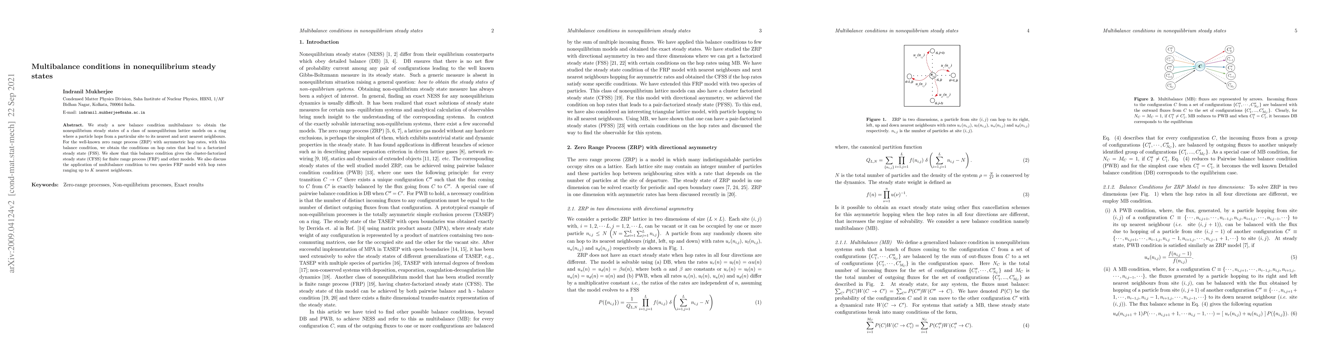 The authors applied a new balance condition called MB to solve nonequilibrium lattice models.