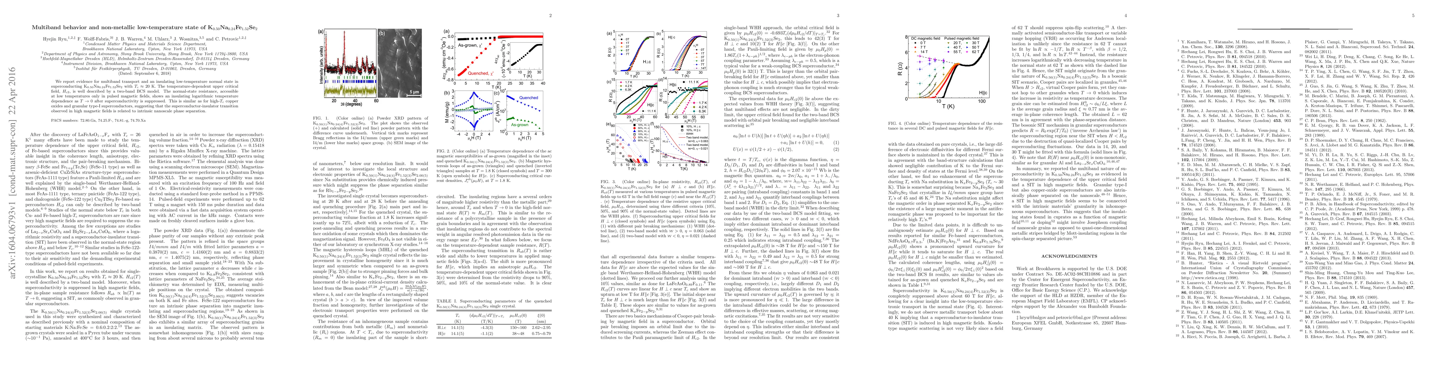 We report evidence for multiband transport and an insulating low-temperature normal state in superconducting K$_{0.50}$Na$_{0.24}$Fe$_{1.52}$Se$_{2}$ with $T_{c}\approx 20$ K. The temperature-dependent upper critical field, $H_{c2}$, is well described by a two-band BCS model. The normal-state resistance, accessible at low temperatures only in pulsed magnetic fields, shows an insulating logarithmic temperature dependence as $T \rightarrow 0$ after superconductivity is suppressed. This is similar as for high-$T_{c}$ copper oxides and granular type-I superconductors, suggesting that the superconductor-insulator transition observed in high magnetic fields is related to intrinsic nanoscale phase separation.