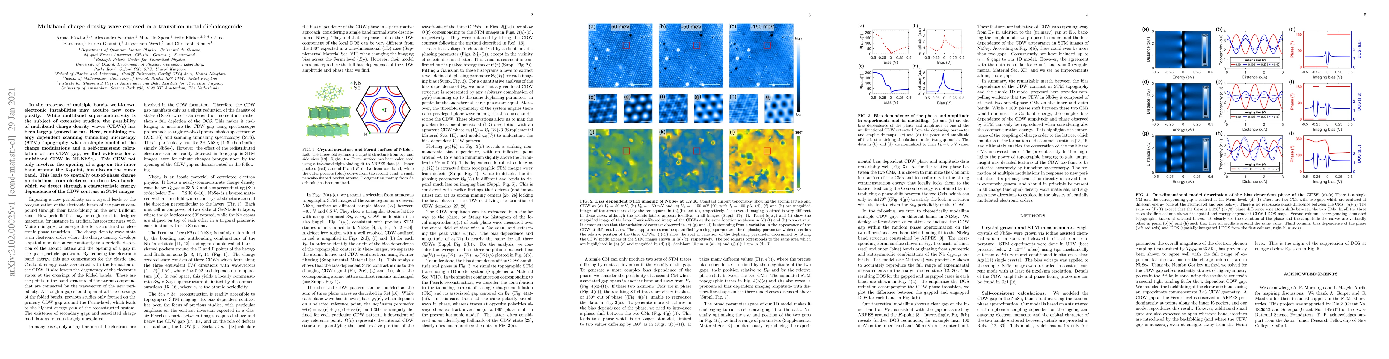 This study reveals a multiband charge density wave (CDW) in 2H-NbSe$_2$ using energy-dependent scanning tunneling microscopy, showing distinct gaps opening on both inner and outer bands, leading to spatially out-of-phase charge modulations. This discovery highlights the complexity of electronic instabilities in multiband systems.