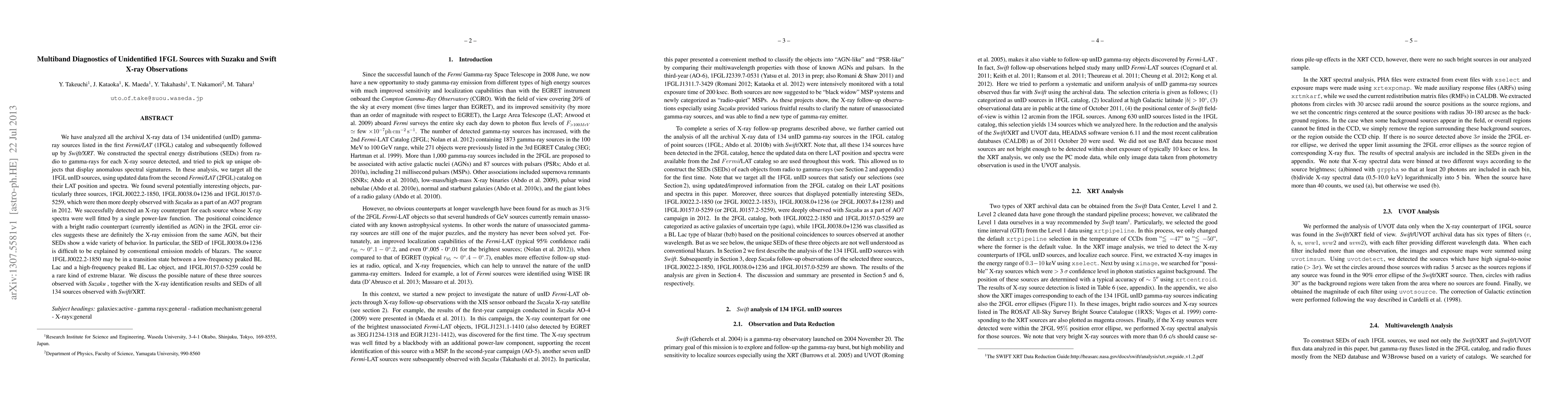 We have analyzed all the archival X-ray data of 134 unidentified (unID) gammaray sources listed in the first Fermi/LAT (1FGL) catalog and subsequently followed up by Swift/XRT. We constructed the spectral energy distributions (SEDs) from radio to gamma-rays for each X-ray source detected, and tried to pick up unique objects that display anomalous spectral signatures. In these analysis, we target all the 1FGL unID sources, using updated data from the second Fermi/LAT (2FGL) catalog on their LAT position and spectra. We found several potentially interesting objects, particularly three sources, 1FGL J0022.2-1850, 1FGL J0038.0+1236 and 1FGL J0157.0-5259, which were then more deeply observed with Suzaku as a part of an AO7 program in 2012. We successfully detected an X-ray counterpart for each source whose X-ray spectra were well fitted by a single power-law function. The positional coincidence with a bright radio counterpart (currently identified as AGN) in the 2FGL error circles suggests these are definitely the X-ray emission from the same AGN, but their SEDs show a wide variety of behavior. In particular, the SED of 1FGL J0038.0+1236 is difficult to be explained by conventional emission models of blazars. The source 1FGL J0022.2-1850 may be in a transition state between a low-frequency peaked BL Lac and a high-frequency peaked BL Lac object, and 1FGL J0157.0-5259 could be a rare kind of extreme blazar. We discuss the possible nature of these three sources observed with Suzaku, together with the X-ray identification results and SEDs of all 134 sources observed with Swift/XRT.
