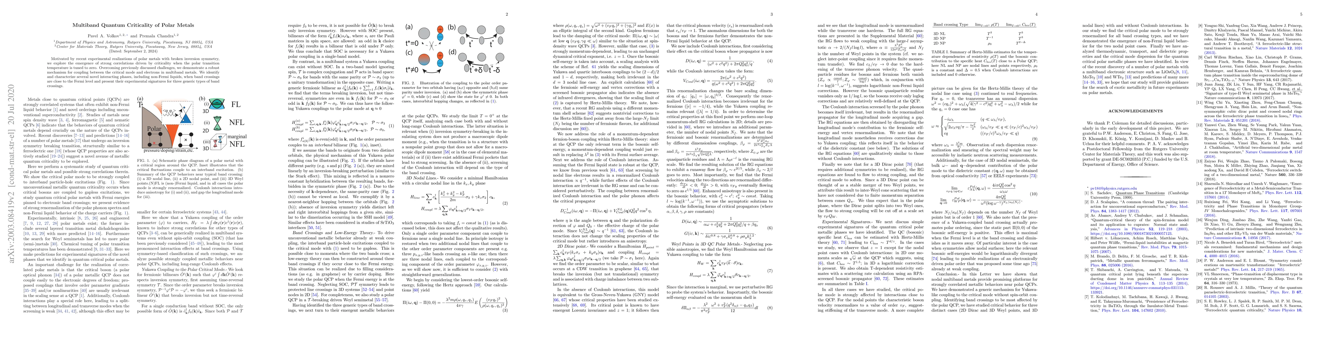 Motivated by recent experimental realizations of polar metals with broken inversion symmetry, we explore the emergence of strong correlations driven by criticality when the polar transition temperature is tuned to zero. Overcoming previously discussed challenges, we demonstrate a robust mechanism for coupling between the critical mode and electrons in multiband metals. We identify and characterize several novel interacting phases, including non-Fermi liquids, when band crossings are close to the Fermi level and present their experimental signatures for three generic types of band crossings.