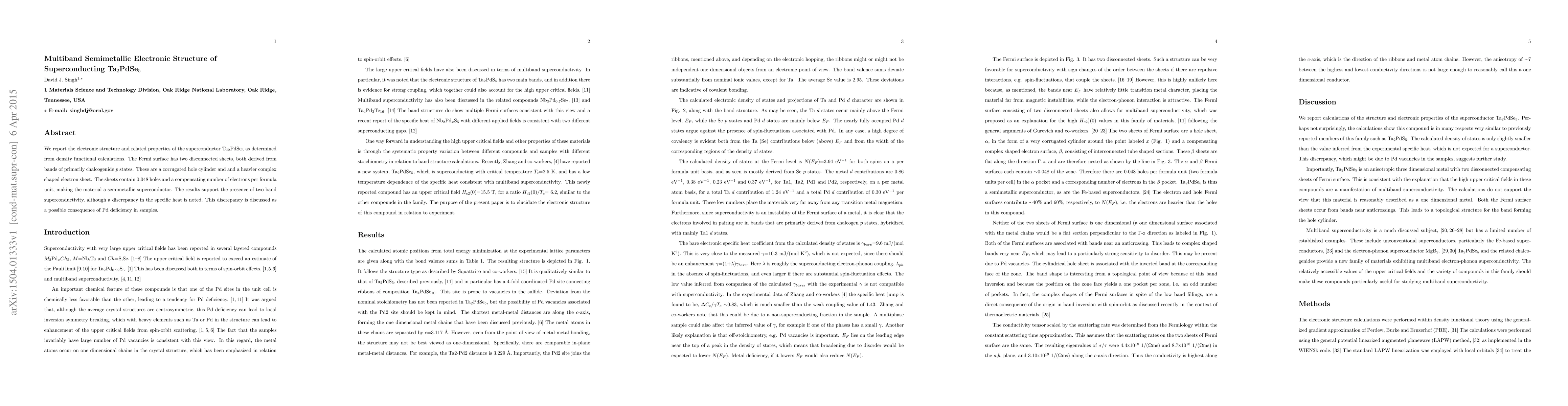 We report the electronic structure and related properties of the superconductor Ta2PdSe5 as determined from density functional calculations. The Fermi surface has two disconnected sheets, both derived from bands of primarily chalcogenide p states. These are a corrugated hole cylinder and and a heavier complex shaped electron sheet. The sheets contain 0.048 holes and a compensating number of electrons per formula unit, making the material a semimetallic superconductor. The results support the presence of two band superconductivity, although a discrepancy in the specific heat is noted. This discrepancy is discussed as a possible consequence of Pd deficiency in samples.