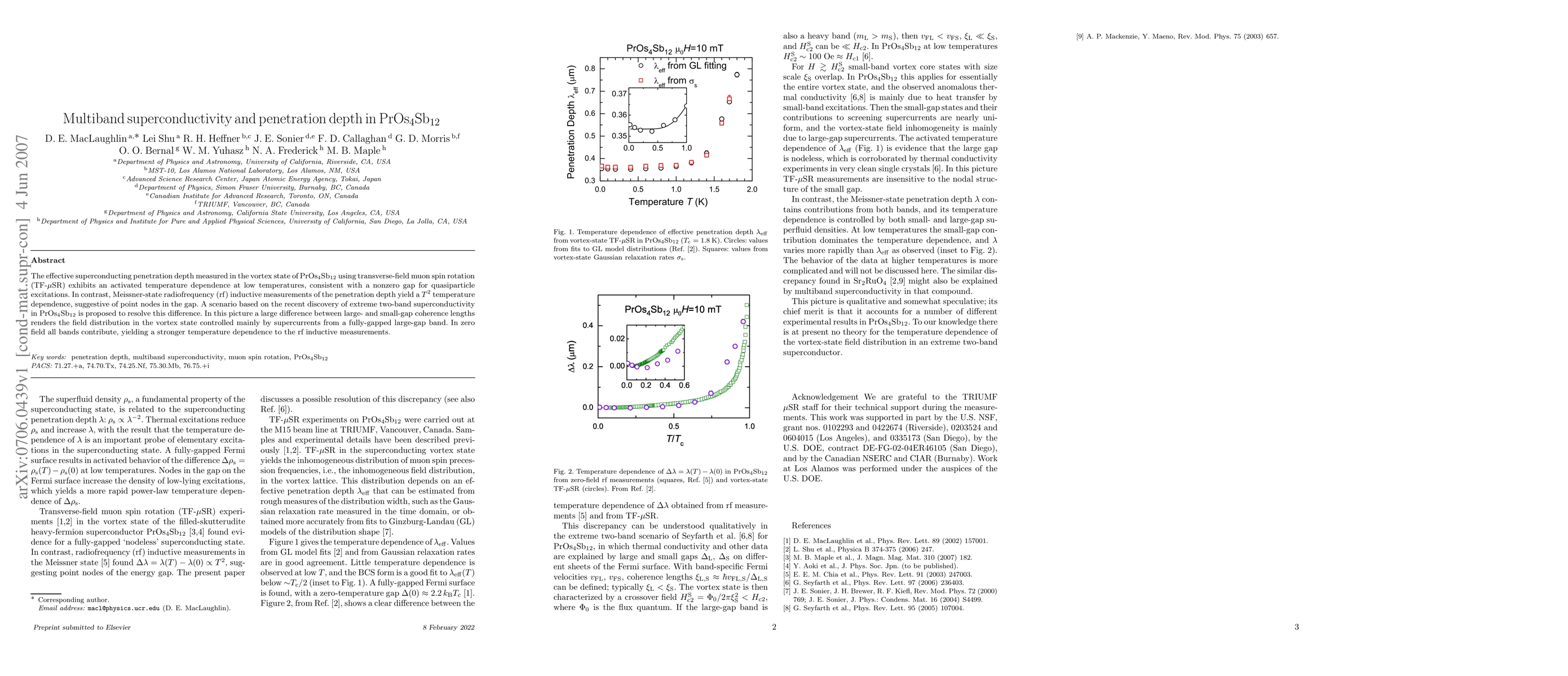 This paper investigates the superconducting penetration depth in PrOs4Sb12, revealing an activated temperature dependence in the vortex state indicative of a nonzero gap, while rf inductive measurements show a T^2 dependence suggesting point nodes. The authors propose a two-band superconductivity model to reconcile these findings.