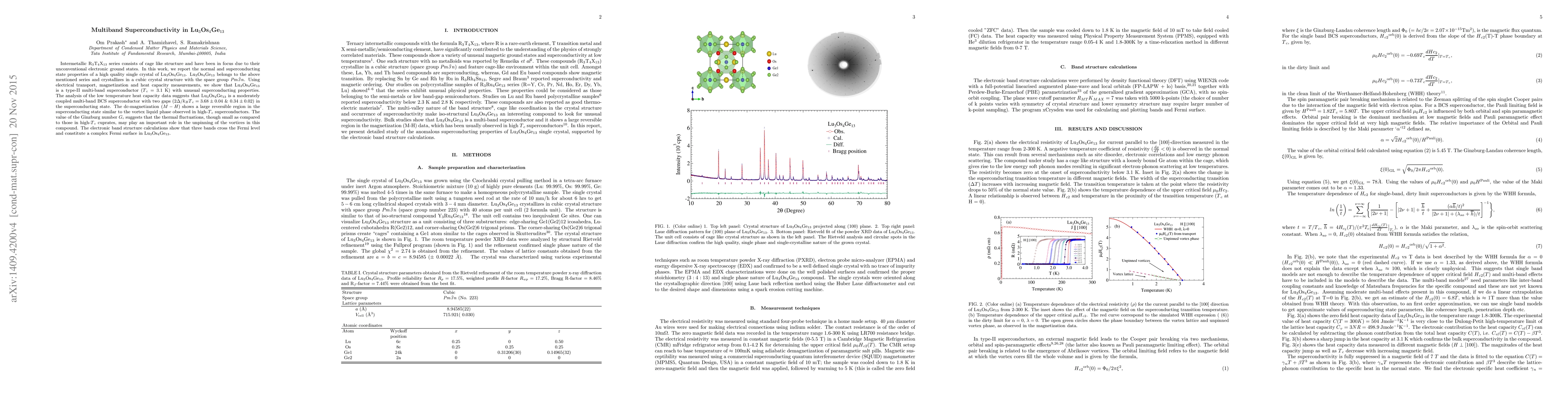 Lu$_3$Os$_4$Ge$_{13}$ exhibits multiband superconductivity with a critical temperature of 3.1 K, featuring two superconducting gaps and a type-II behavior, alongside a large reversible region in its superconducting state indicative of vortex liquid phase dynamics.