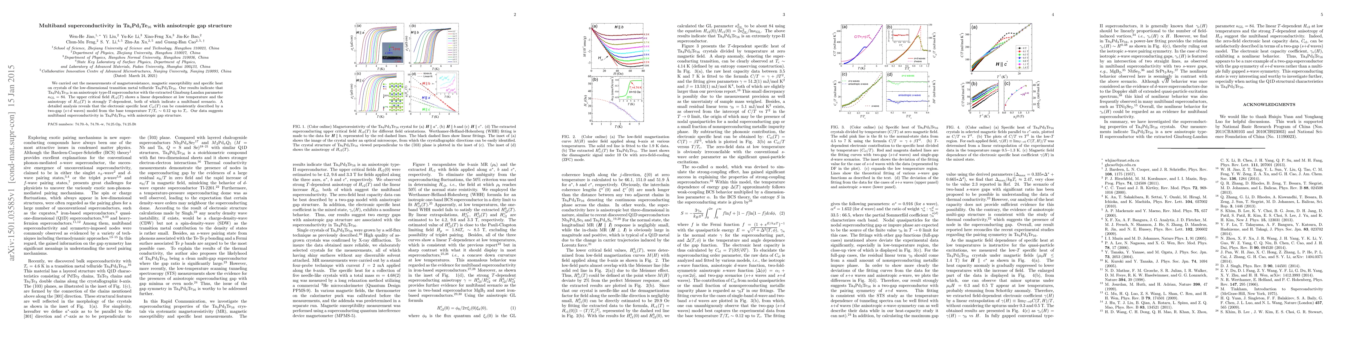 Ta$_4$Pd$_3$Te$_{16}$ is a type-II superconductor with multiband superconductivity featuring anisotropic gap structure, as indicated by its linear H$_c2$(T) dependence and temperature-dependent anisotropy.