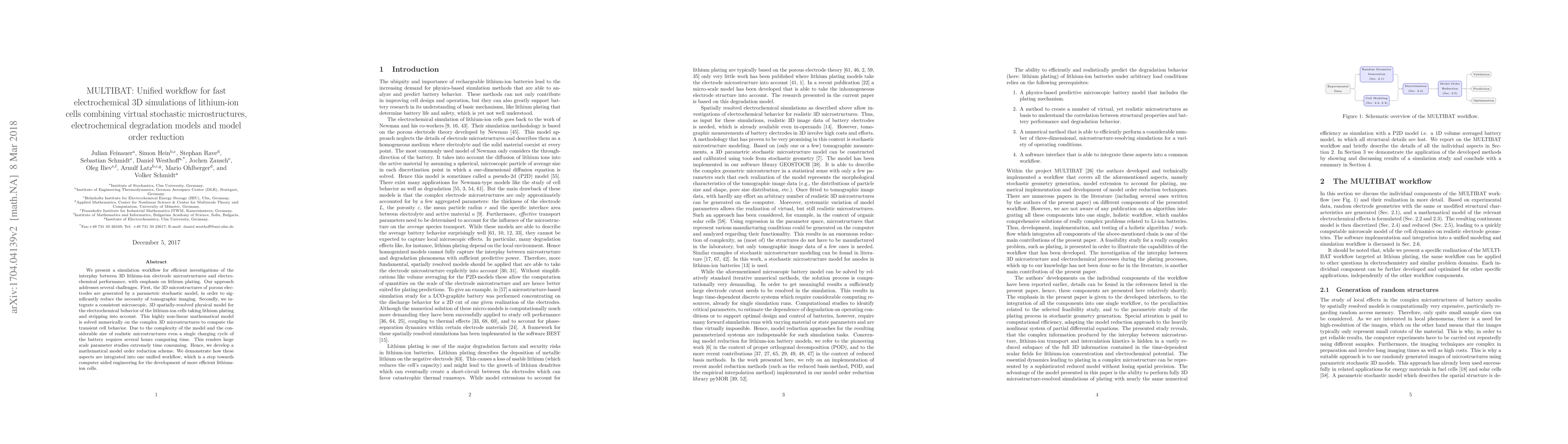 The paper introduces MULTIBAT, a unified workflow for fast 3D electrochemical simulations of lithium-ion cells, combining virtual microstructures, degradation models, and model order reduction to efficiently study lithium plating and reduce computational time. This approach aims to facilitate the development of more efficient lithium-ion batteries through computer-aided engineering.