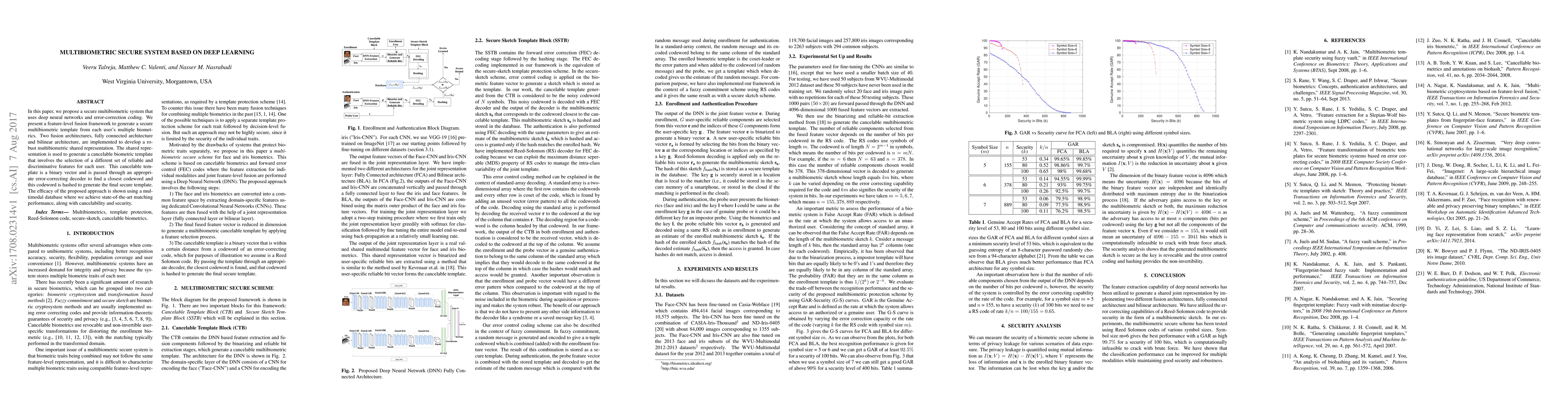 A new deep learning-based multibiometric system provides enhanced security through error-correction coding and cancelable biometric templates, achieving state-of-the-art matching performance in a multimodal database.