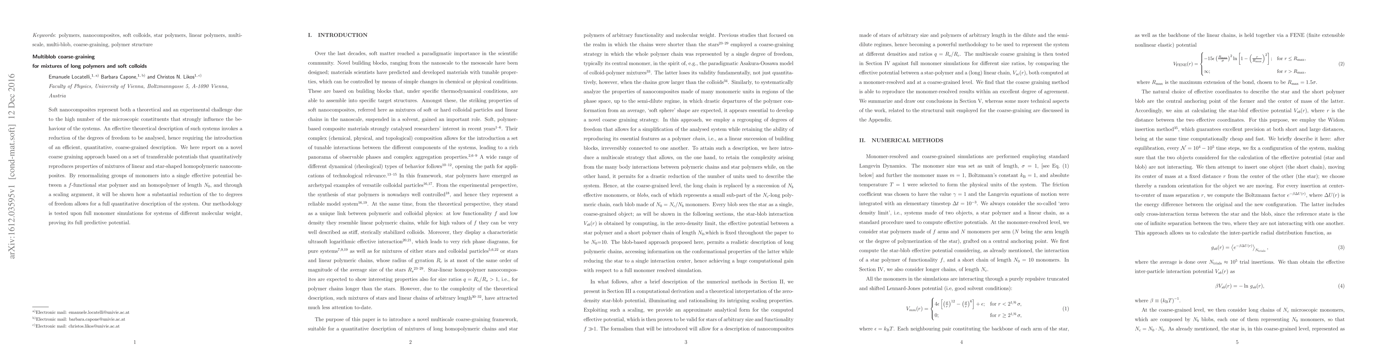 This paper introduces a novel coarse-graining method for mixtures of long polymers and soft colloids, using transferable potentials to reduce degrees of freedom. The approach effectively describes linear and star-shaped homopolymeric nanocomposites, validated through simulations of varying molecular weights.