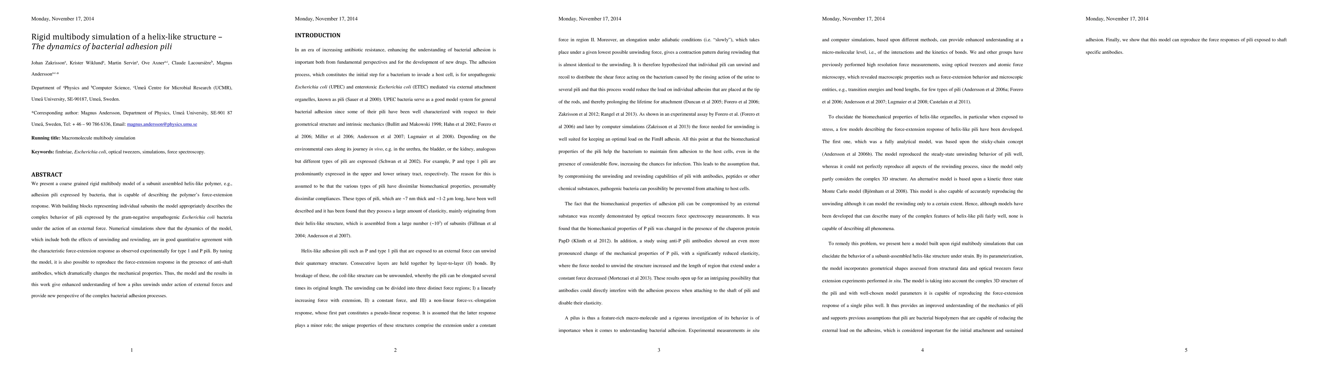 Researchers developed a model to simulate adhesion pili behavior, accurately predicting their force-extension response under external forces. The model revealed how anti-shaft antibodies alter mechanical properties, offering new insights into bacterial adhesion processes.