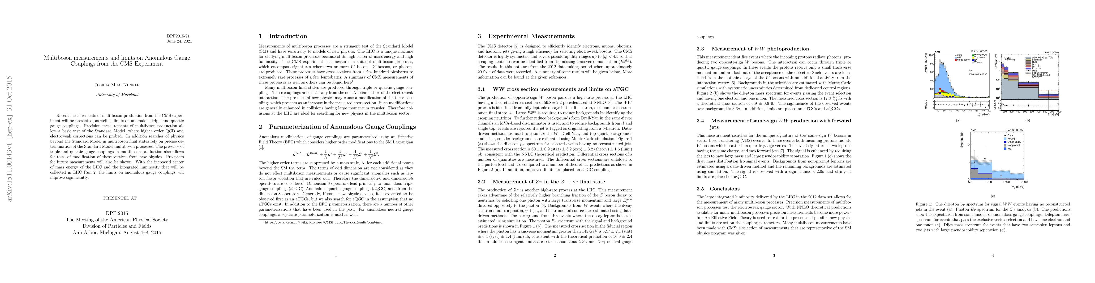 This paper presents recent CMS experiment measurements of multiboson production and sets limits on anomalous triple and quartic gauge couplings, providing a stringent test of the Standard Model and probing for physics beyond it. Future improvements in LHC energy and luminosity are expected to significantly enhance these limits.