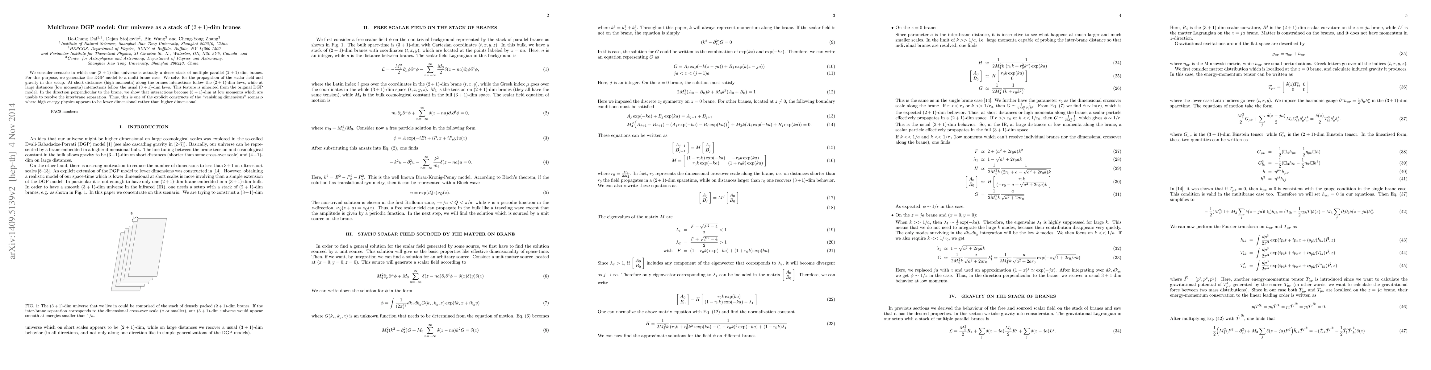 We consider scenario in which our $(3+1)$-dim universe is actually a dense stack of multiple parallel $(2+1)$-dim branes. For this purpose, we generalize the DGP model to a multi-brane case. We solve for the propagation of the scalar field and gravity in this setup. At short distances (high momenta) along the branes interactions follow the $(2+1)$-dim laws, while at large distances (low momenta) interactions follow the usual $(3+1)$-dim laws. This feature is inherited from the original DGP model. In the direction perpendicular to the brane, we show that interactions become $(3+1)$-dim at low momenta which are unable to resolve the interbrane separation. Thus, this is one of the explicit constructs of the "vanishing dimensions" scenario where high energy physics appears to be lower dimensional rather than higher dimensional.