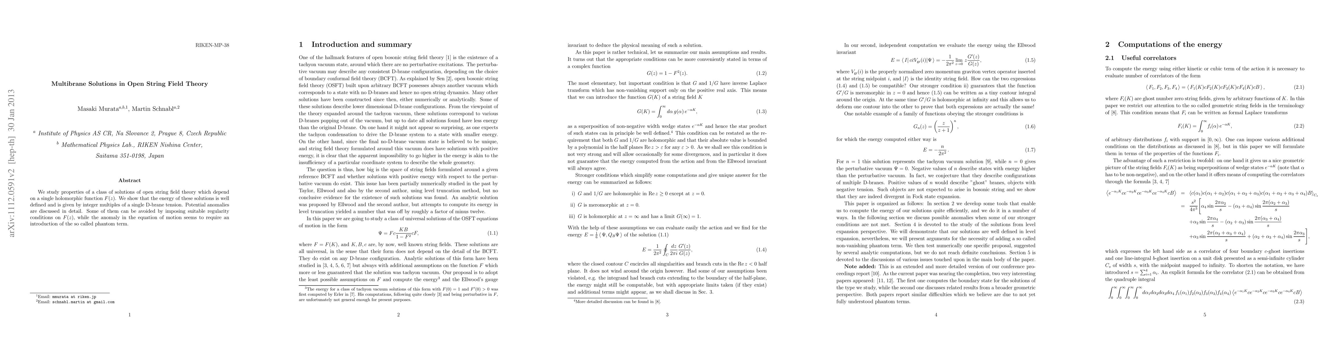 This paper investigates solutions in open string field theory characterized by a holomorphic function F(z), demonstrating their well-defined energy as integer multiples of D-brane tension. It discusses potential anomalies, some of which can be resolved by imposing regularity conditions, while an anomaly in the equation of motion necessitates the introduction of a phantom term.