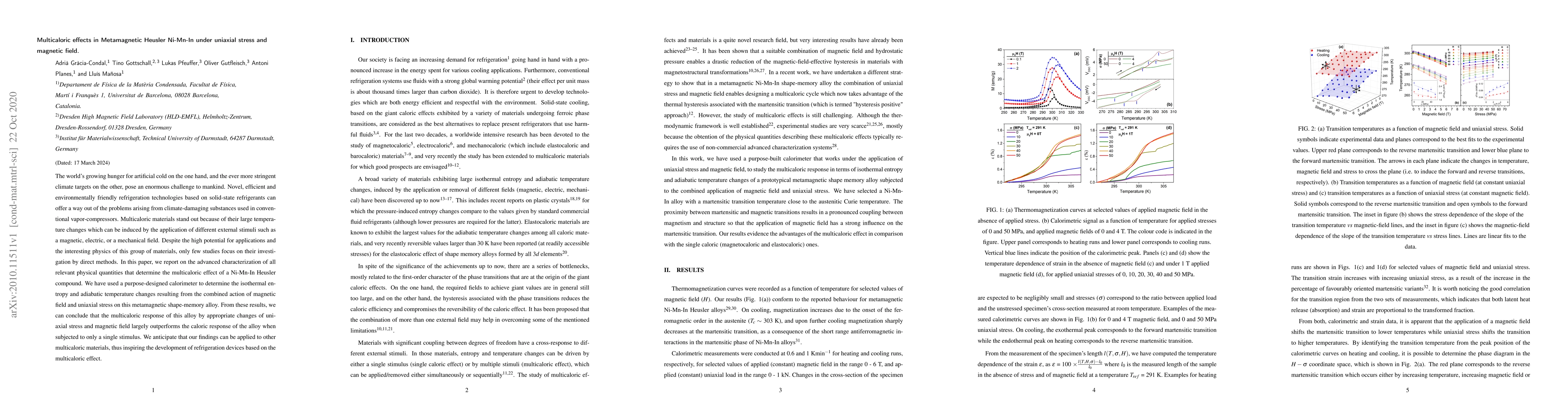 This research investigates the multicaloric effect in a Ni-Mn-In Heusler compound under uniaxial stress and magnetic field. Using a custom calorimeter, the study reveals that combined stimuli significantly enhance the material's temperature change, surpassing single stimulus responses. These findings suggest potential for developing efficient, eco-friendly refrigeration technologies based on multicaloric effects.