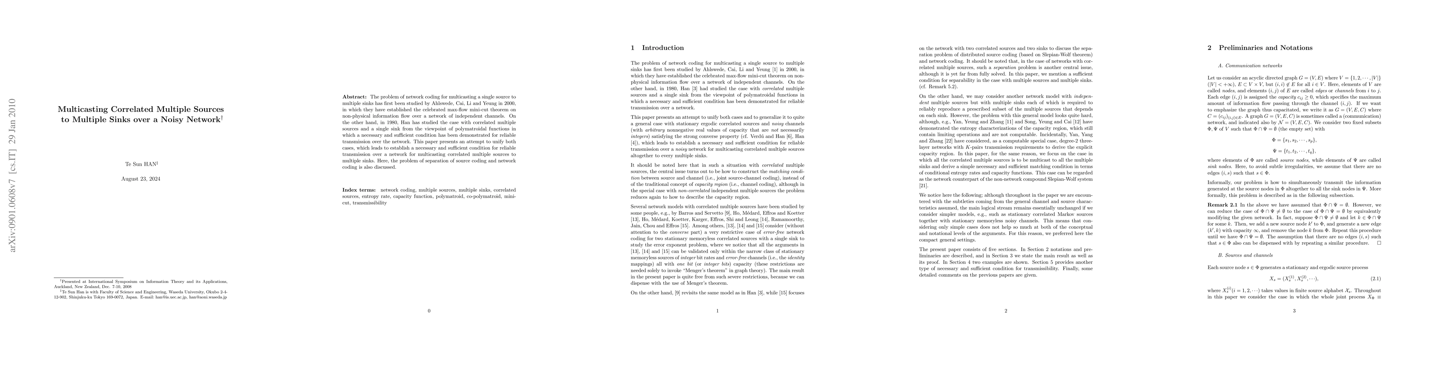 The problem of network coding with multicast of a single source to multisink has first been studied by Ahlswede, Cai, Li and Yeung in 2000, in which they have established the celebrated max-flow mini-cut theorem on non-physical information flow over a network of independent channels. On the other hand, in 1980, Han has studied the case with correlated multisource and a single sink from the viewpoint of polymatroidal functions in which a necessary and sufficient condition has been demonstrated for reliable transmission over the network. This paper presents an attempt to unify both cases, which leads to establish a necessary and sufficient condition for reliable transmission over a network multicasting correlated multisource to multisink. Here, the problem of separation of source coding and channel coding is also discussed.