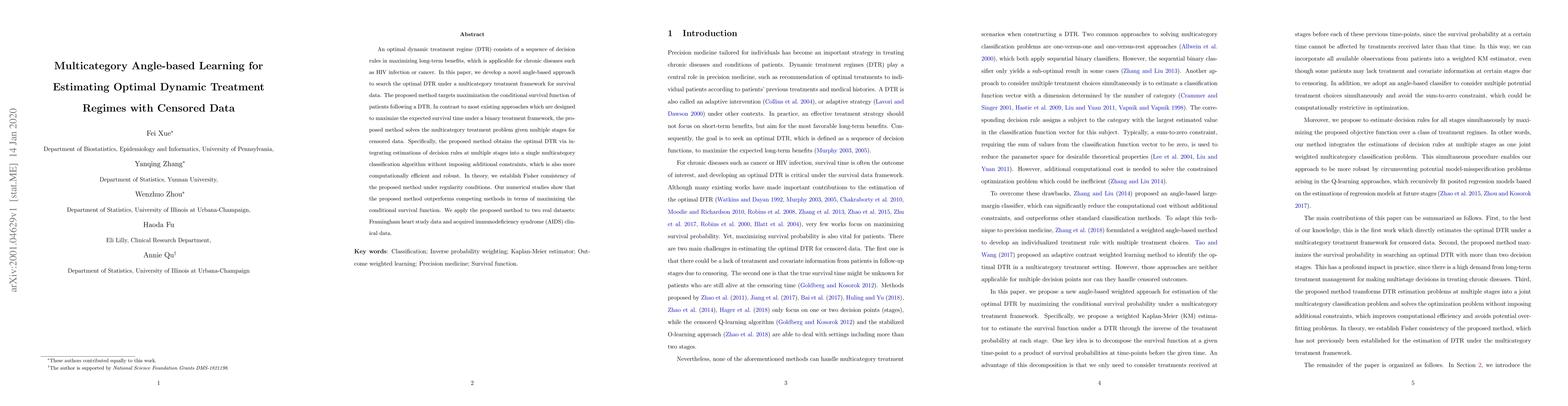 This paper introduces a novel angle-based method for finding optimal dynamic treatment regimes in multicategory settings, especially for chronic diseases with censored survival data. The proposed approach outperforms existing binary treatment frameworks and is more computationally efficient and robust.