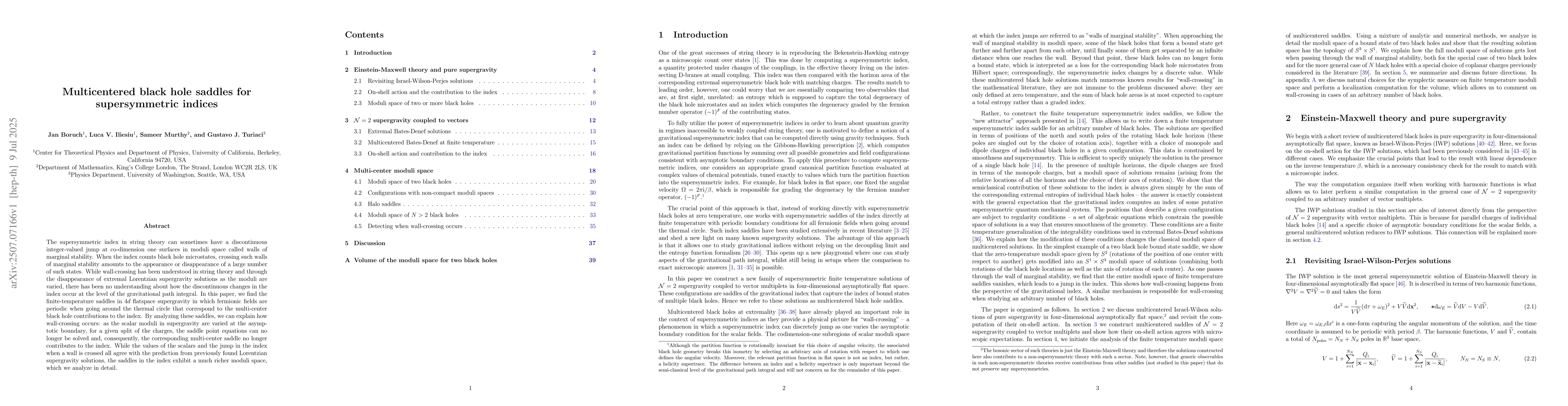 The supersymmetric index in string theory can sometimes have a discontinuous integer-valued jump at co-dimension one surfaces in moduli space called walls of marginal stability. When the index counts black hole microstates, crossing such walls of marginal stability amounts to the appearance or disappearance of a large number of such states. While wall-crossing has been understood in string theory and through the disappearance of extremal Lorentzian supergravity solutions as the moduli are varied, there has been no understanding about how the discontinuous changes in the index occur at the level of the gravitational path integral. In this paper, we find the finite-temperature saddles in $4d$ flatspace supergravity in which fermionic fields are periodic when going around the thermal circle that correspond to the multi-center black hole contributions to the index. By analyzing these saddles, we can explain how wall-crossing occurs: as the scalar moduli in supergravity are varied at the asymptotic boundary, for a given split of the charges, the saddle point equations can no longer be solved and, consequently, the corresponding multi-center saddle no longer contributes to the index. While the values of the scalars and the jump in the index when a wall is crossed all agree with the prediction from previously found Lorentzian supergravity solutions, the saddles in the index exhibit a much richer moduli space, which we analyze in detail.