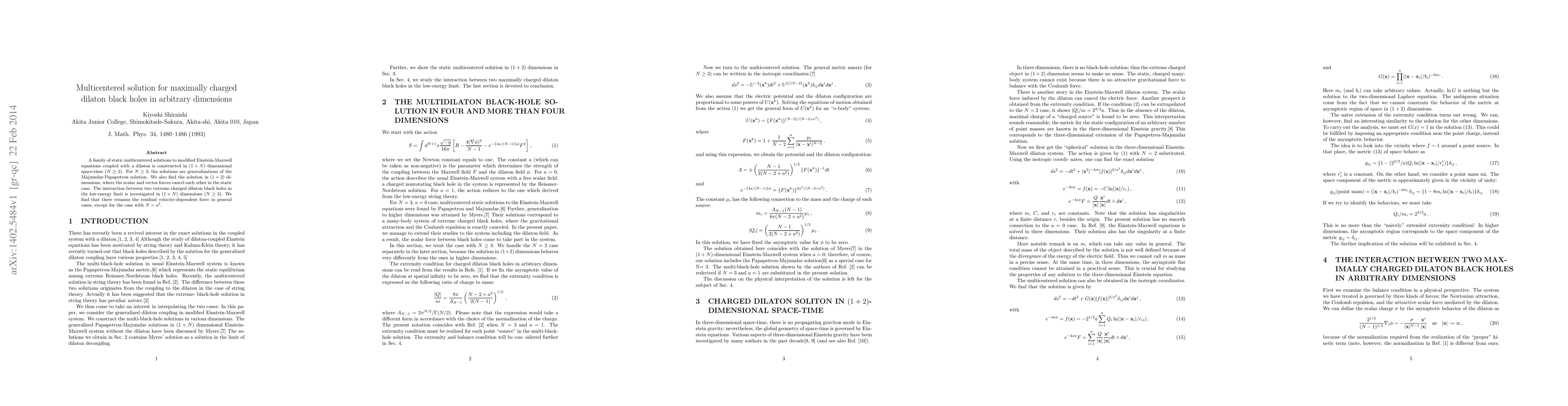 This research presents a family of static multicentered solutions for charged black holes in (1+N) dimensional space-time, generalizing the Majumdar-Papapetrou solution for N >= 3. The study also examines the interaction of extreme charged dilaton black holes, revealing a residual velocity-dependent force in most cases except for N=a^2.