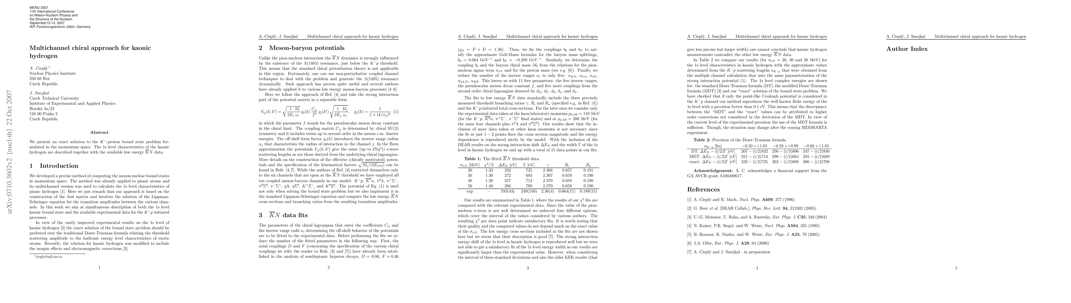 We present an exact solution to the $K^{-}$-proton bound state problem formulated in the momentum space. The 1s level characteristics of the kaonic hydrogen are described together with the available low energy $\bar{K}N$ data.