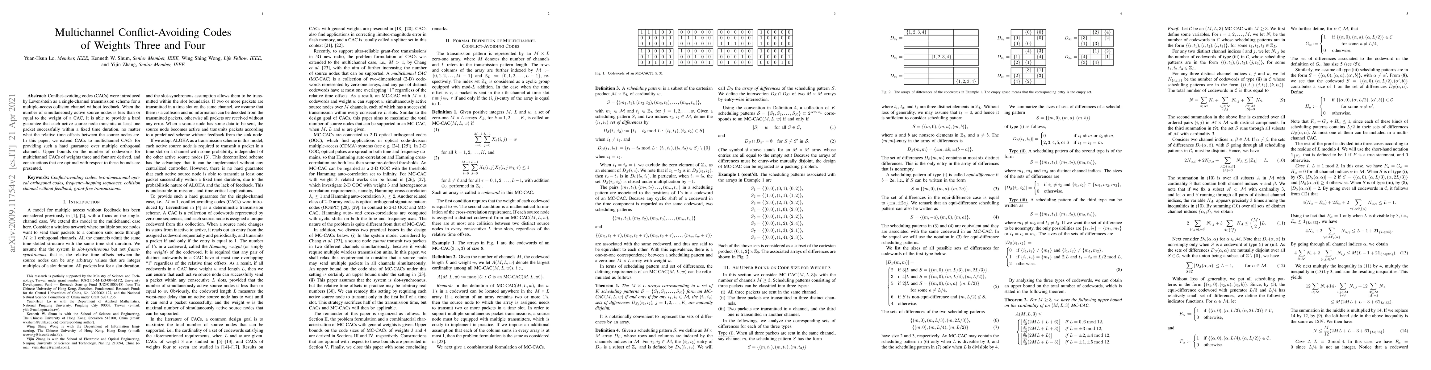 This paper extends conflict-avoiding codes (CACs) to multichannel settings, ensuring successful packet transmission across multiple orthogonal channels. It derives upper bounds and optimal constructions for multichannel CACs of weights three and four.