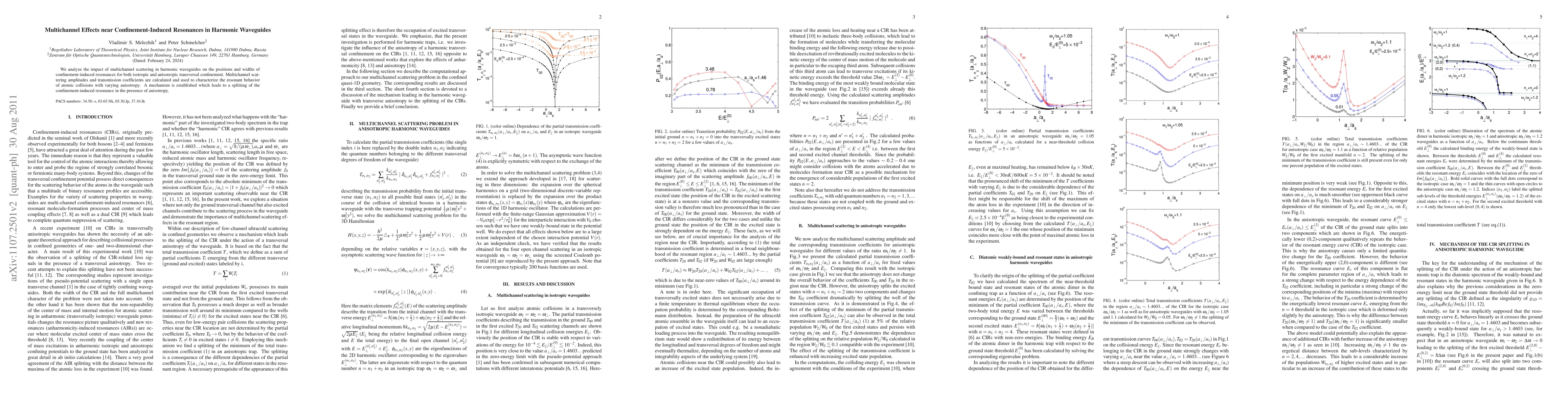 This paper investigates the influence of multichannel scattering on confinement-induced resonances in harmonic waveguides, finding that anisotropy leads to resonance splitting and characterizing the scattering behavior in both isotropic and anisotropic conditions.
