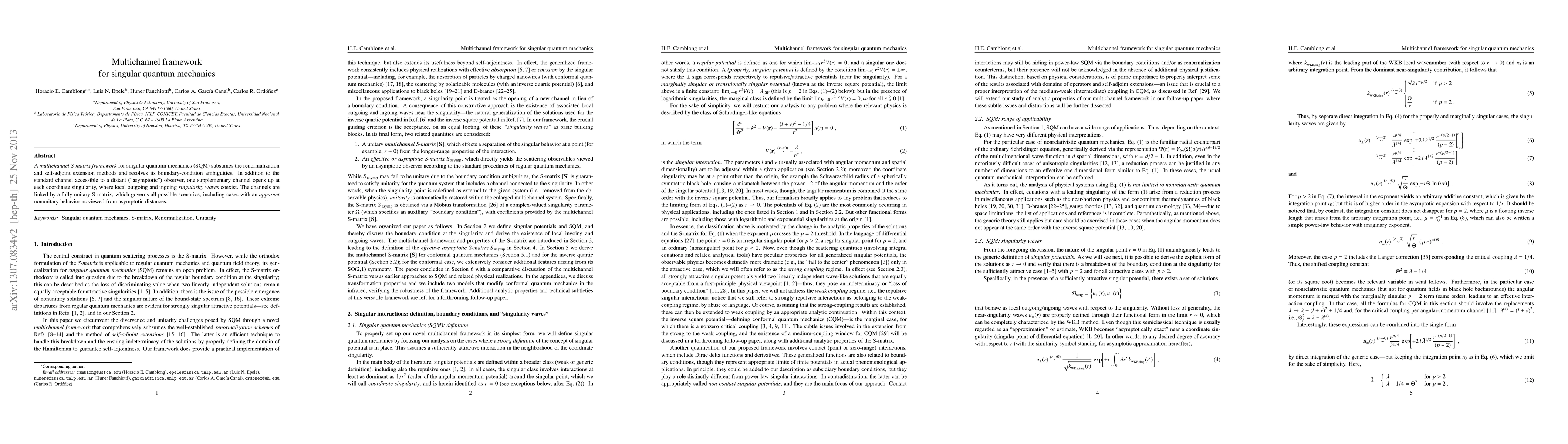 A multichannel S-matrix framework for singular quantum mechanics (SQM) subsumes the renormalization and self-adjoint extension methods and resolves its boundary-condition ambiguities. In addition to the standard channel accessible to a distant ("asymptotic") observer, one supplementary channel opens up at each coordinate singularity, where local outgoing and ingoing singularity waves coexist. The channels are linked by a fully unitary S-matrix, which governs all possible scenarios, including cases with an apparent nonunitary behavior as viewed from asymptotic distances.