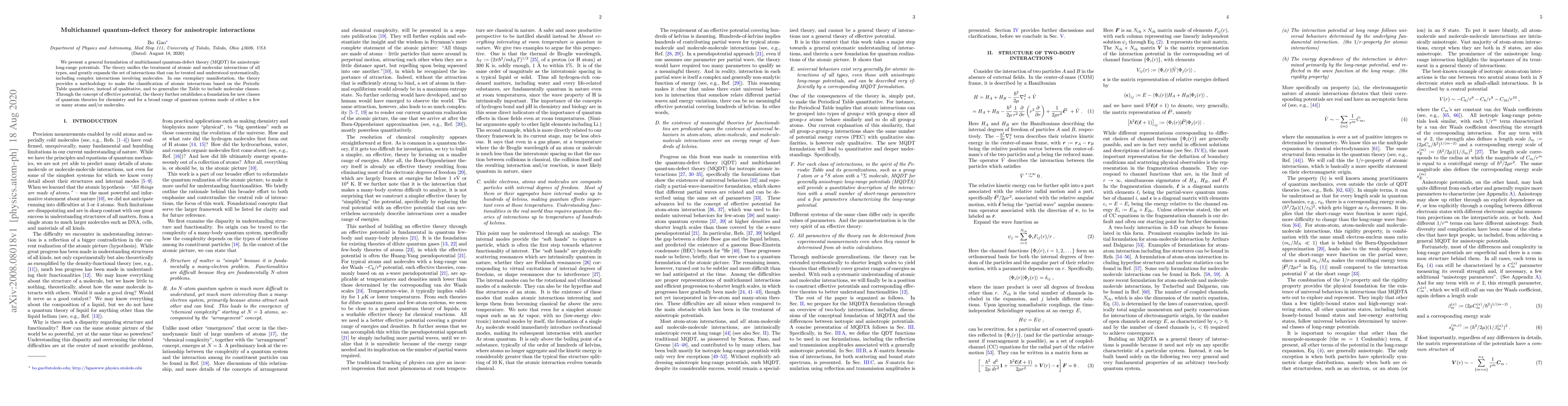 This paper develops a multichannel quantum-defect theory (MQDT) for anisotropic long-range potentials, unifying the treatment of various atomic and molecular interactions, and enabling a quantitative classification of atomic interactions based on the Periodic Table. The theory also lays the groundwork for new quantum theories in chemistry and for quantum systems involving multiple atoms or molecules.