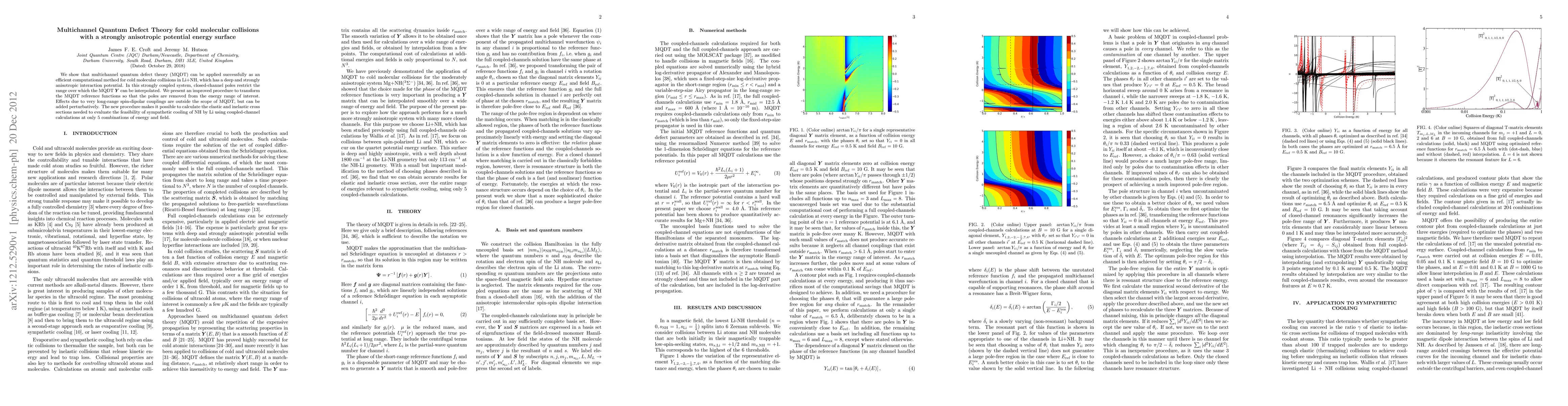 This paper demonstrates the application of multichannel quantum defect theory (MQDT) for cold molecular collisions in Li+NH, addressing a strongly anisotropic potential. An improved method is presented to interpolate the MQDT Y matrix by removing closed-channel poles, enabling the calculation of elastic and inelastic cross sections for sympathetic cooling feasibility.