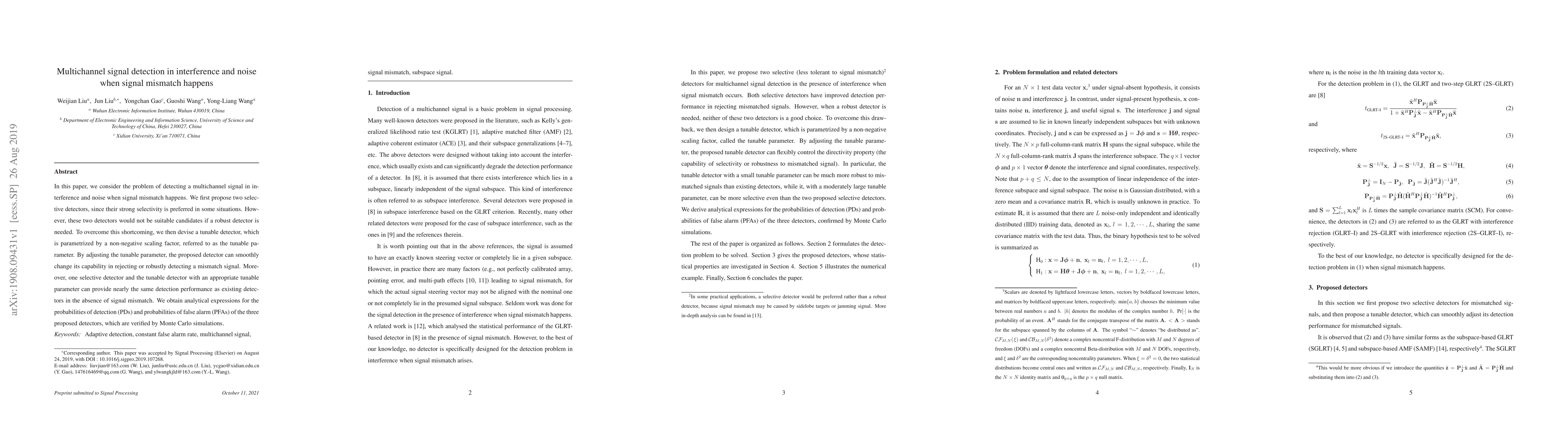 Researchers propose a tunable detector to detect multichannel signals in interference and noise when signal mismatch occurs, offering a flexible solution that can balance detection performance with robustness.