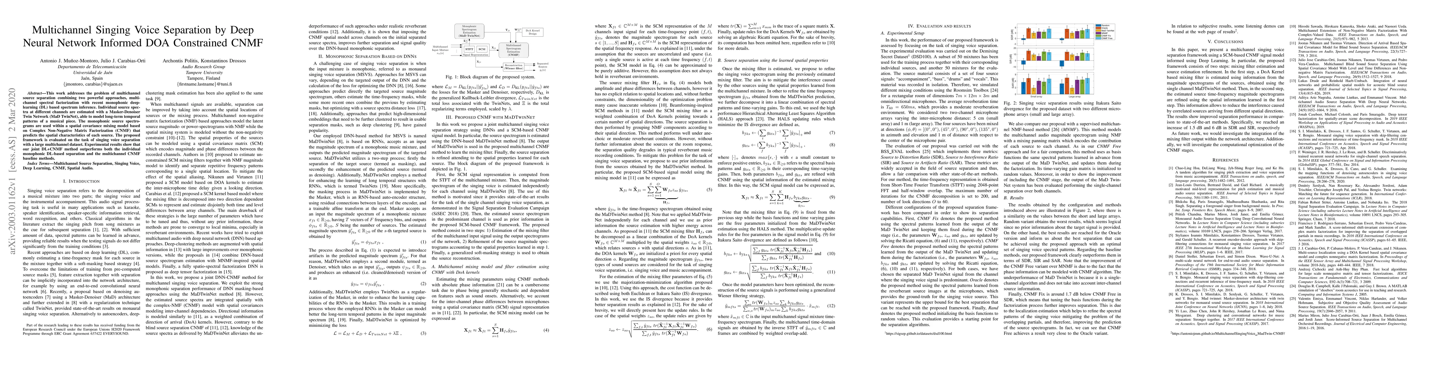 A new method combines deep learning and CNMF for multichannel singing voice separation, outperforming individual methods and achieving state-of-the-art results.