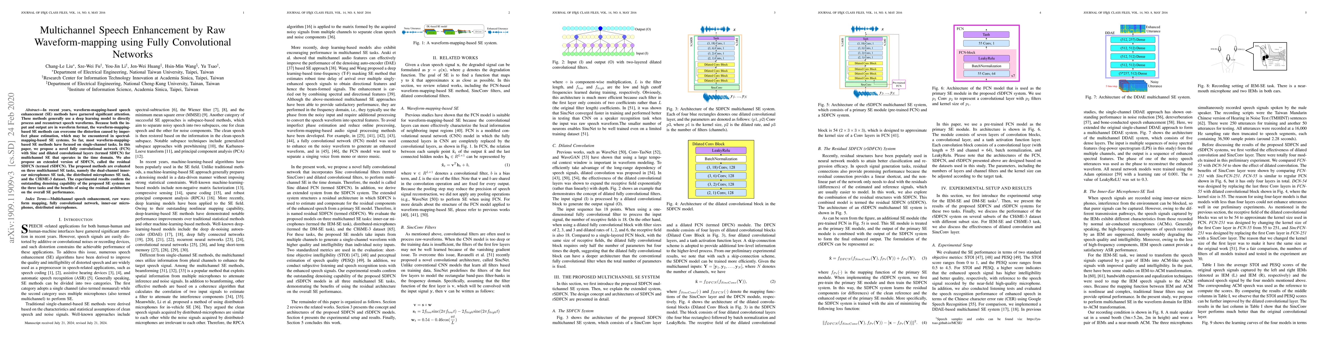 This paper proposes a novel fully convolutional network (SDFCN) and its residual version (rSDFCN) for multichannel speech enhancement using waveform-mapping. The methods demonstrate superior denoising performance in dual-channel and distributed microphone settings.
