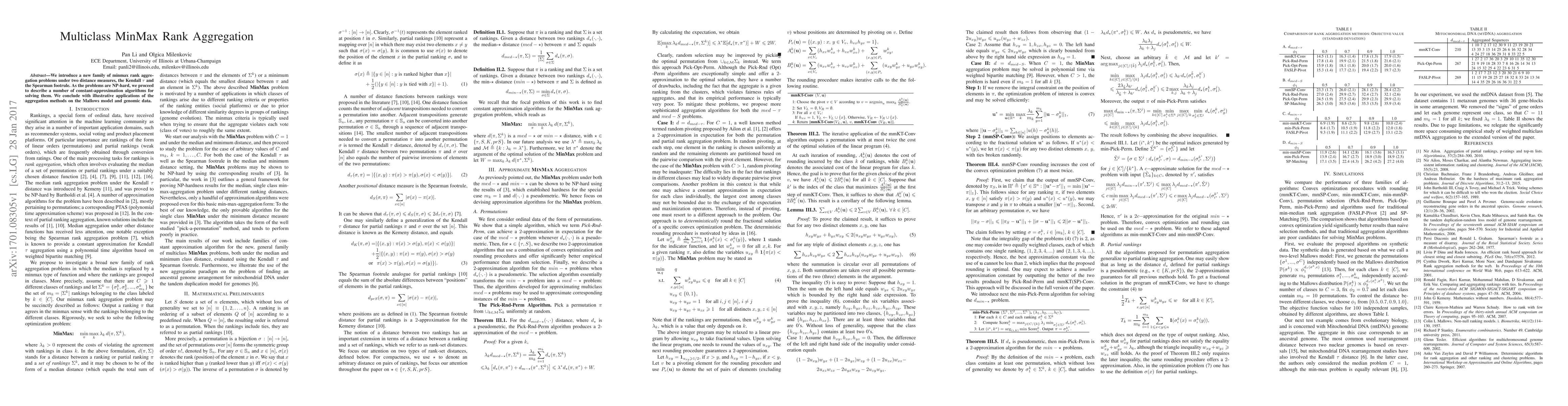 This paper introduces minmax rank aggregation problems under Kendall {\tau} and Spearman footrule distances, presenting NP-hard challenges and describing constant-approximation algorithms. It also demonstrates applications in the Mallows model and genomic data analysis.