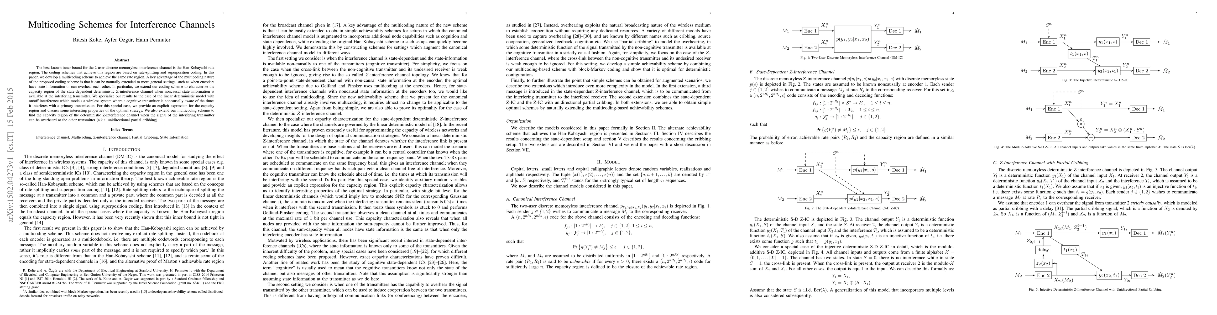 The best known inner bound for the 2-user discrete memoryless interference channel is the Han-Kobayashi rate region. The coding schemes that achieve this region are based on rate-splitting and superposition coding. In this paper, we develop a multicoding scheme to achieve the same rate region. A key advantage of the multicoding nature of the proposed coding scheme is that it can be naturally extended to more general settings, such as when encoders have state information or can overhear each other. In particular, we extend our coding scheme to characterize the capacity region of the state-dependent deterministic Z-interference channel when noncausal state information is available at the interfering transmitter. We specialize our results to the case of the linear deterministic model with on/off interference which models a wireless system where a cognitive transmitter is noncausally aware of the times it interferes with a primary transmission. For this special case, we provide an explicit expression for the capacity region and discuss some interesting properties of the optimal strategy. We also extend our multicoding scheme to find the capacity region of the deterministic Z-interference channel when the signal of the interfering transmitter can be overheard at the other transmitter (a.k.a. unidirectional partial cribbing).