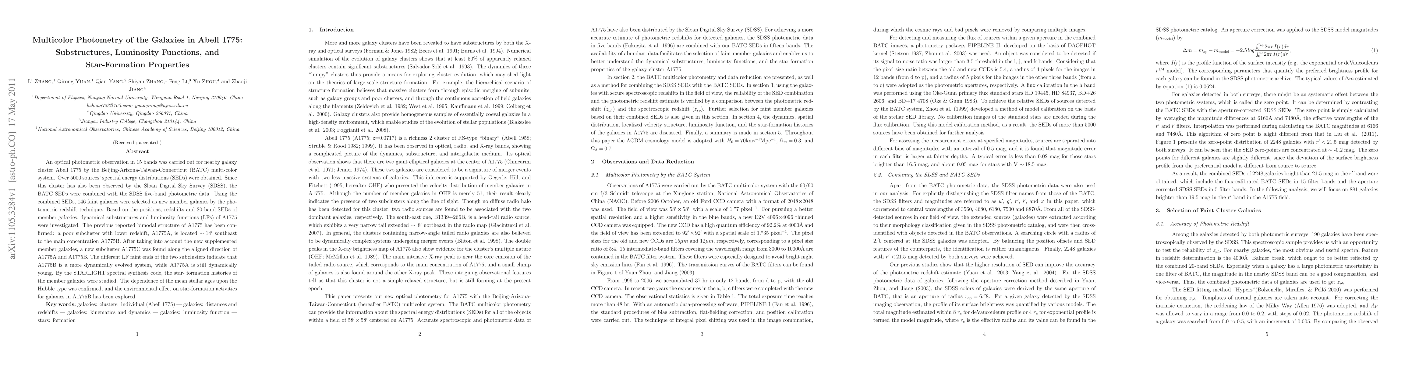 This study combines optical photometry from the BATC and SDSS surveys to analyze the galaxy cluster Abell 1775, identifying new member galaxies and confirming its bimodal structure. The research reveals a new subcluster and explores the star-formation histories and environmental effects on star-formation activities across different Hubble types.