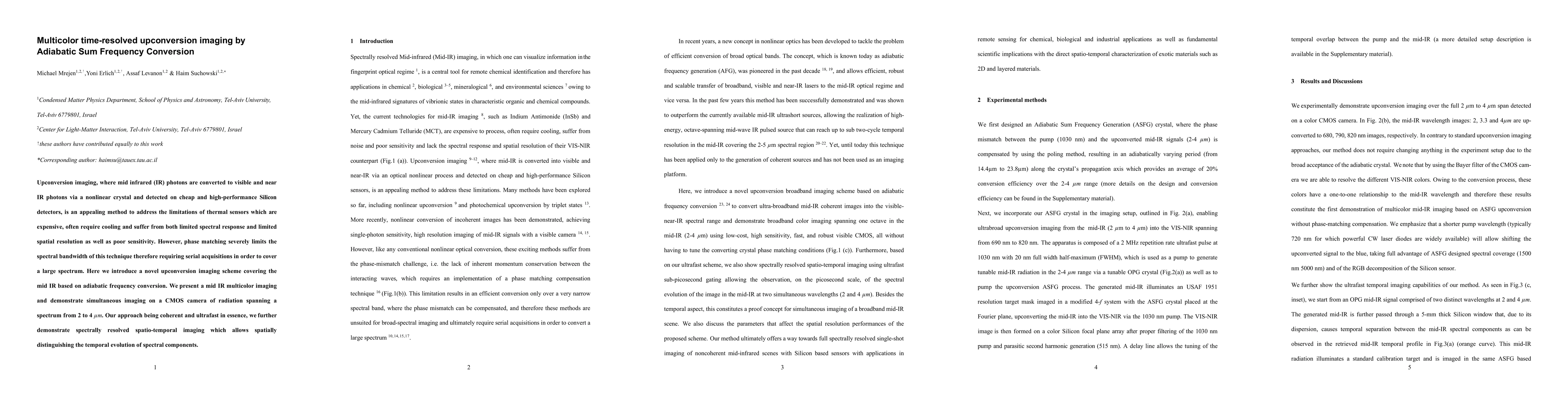 Researchers introduce a novel upconversion imaging scheme using adiabatic frequency conversion to cover the mid IR range, enabling simultaneous multicolor imaging on CMOS cameras and spectrally resolved spatio-temporal imaging.