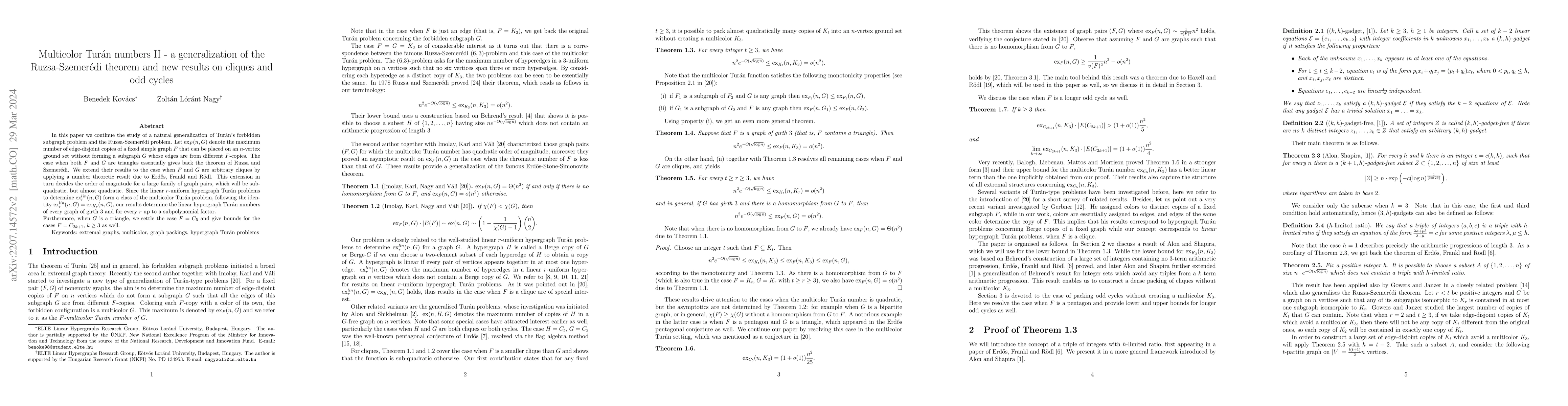 This paper generalizes the Turán problem to multicolor settings, extending the Ruzsa-Szemerédi theorem for arbitrary cliques and determining the order of magnitude for edge-disjoint copies of cliques and odd cycles without forming a specified subgraph. It also resolves linear hypergraph Turán numbers for graphs of girth 3 and bounds for cycles of odd length.