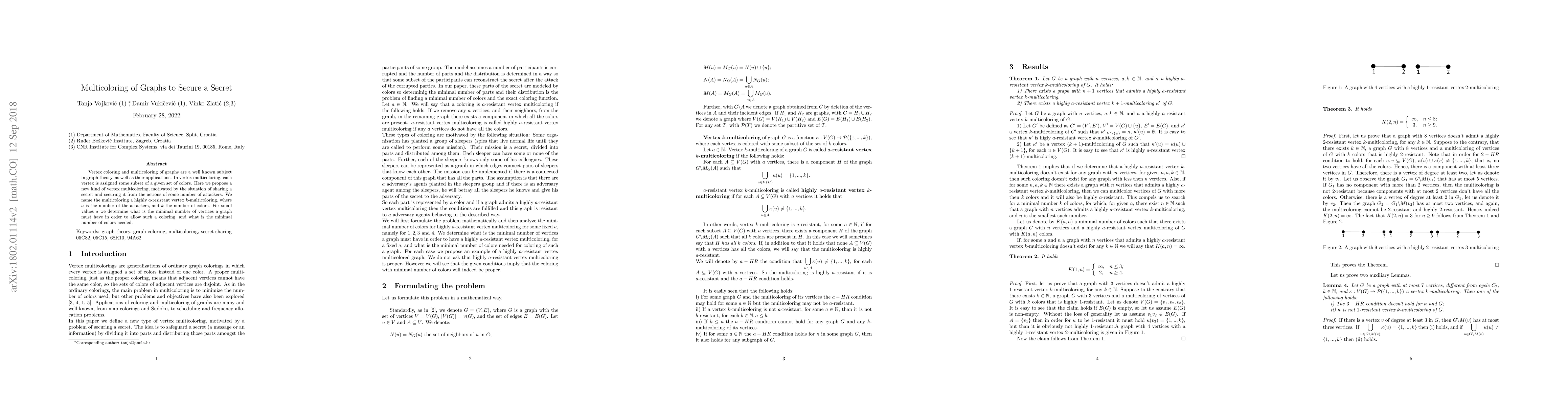 The paper presents a new type of vertex multicoloring, highly a-resistant vertex k-multicoloring, and determines the minimal number of vertices and colors for small values of a and k, contributing to graph theory and cryptography.