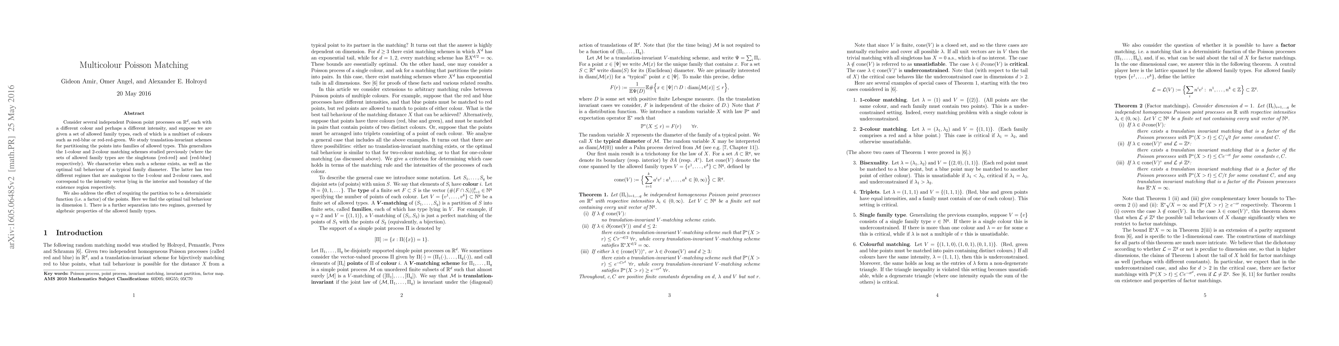 Consider several independent Poisson point processes on R^d, each with a different colour and perhaps a different intensity, and suppose we are given a set of allowed family types, each of which is a multiset of colours such as red-blue or red-red-green. We study translation-invariant schemes for partitioning the points into families of allowed types. This generalizes the 1-colour and 2-colour matching schemes studied previously (where the sets of allowed family types are the singletons {red-red} and {red-blue} respectively). We characterize when such a scheme exists, as well as the optimal tail behaviour of a typical family diameter. The latter has two different regimes that are analogous to the 1-colour and 2-colour cases, and correspond to the intensity vector lying in the interior and boundary of the existence region respectively. We also address the effect of requiring the partition to be a deterministic function (i.e. a factor) of the points. Here we find the optimal tail behaviour in dimension 1. There is a further separation into two regimes, governed by algebraic properties of the allowed family types.